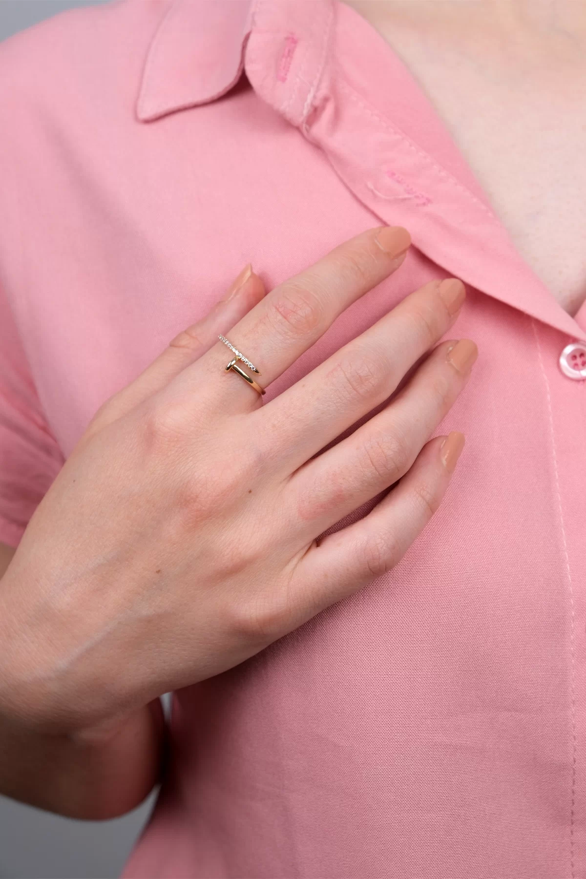 14 Ayar Altın Taşlı Çivi Yüzük 95