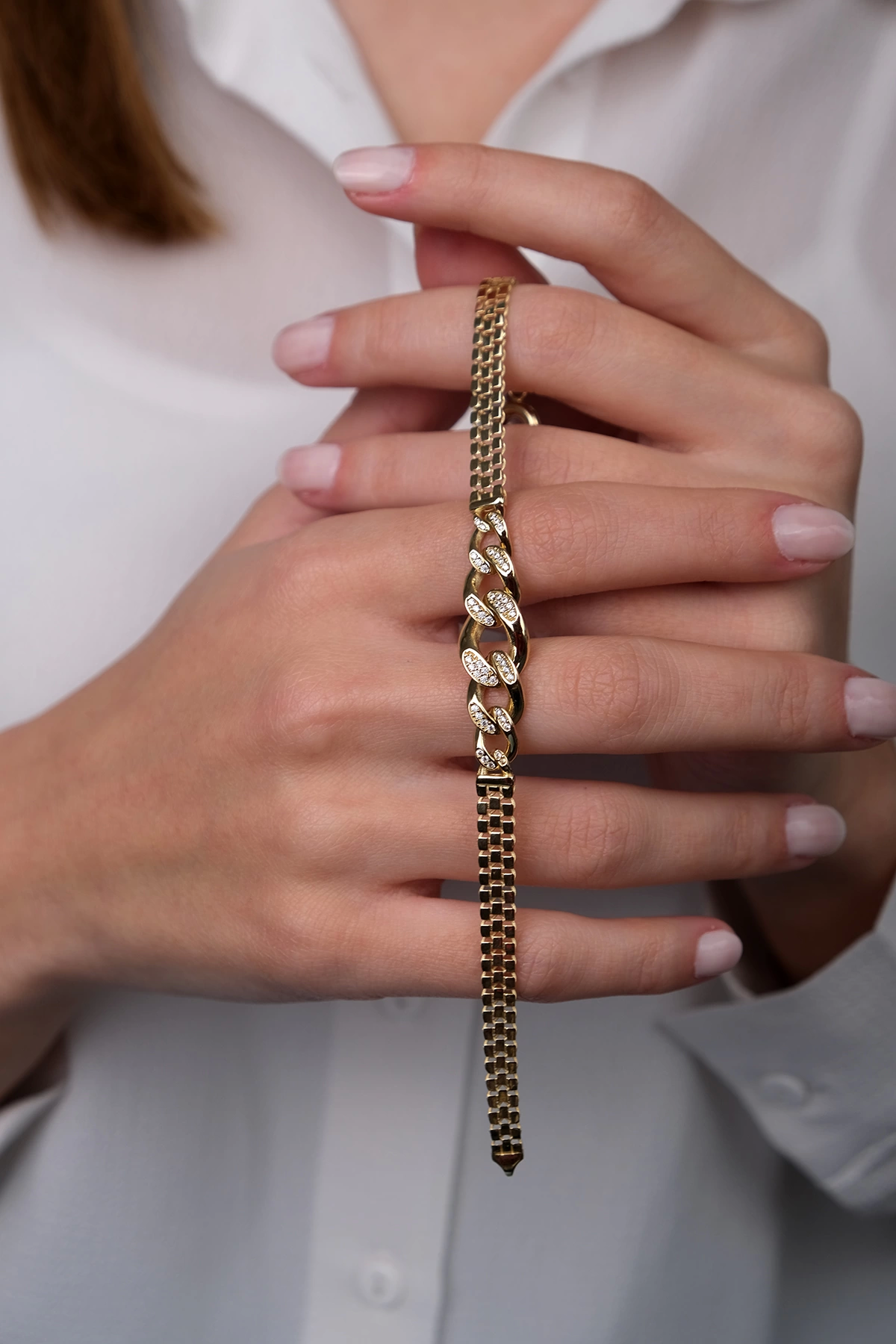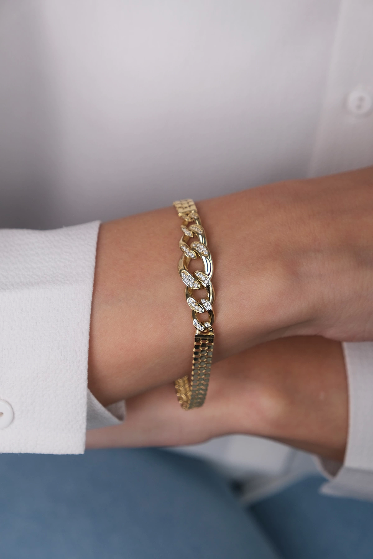14 Ayar Altın Taşlı Gurmet Zincir Bileklik 385