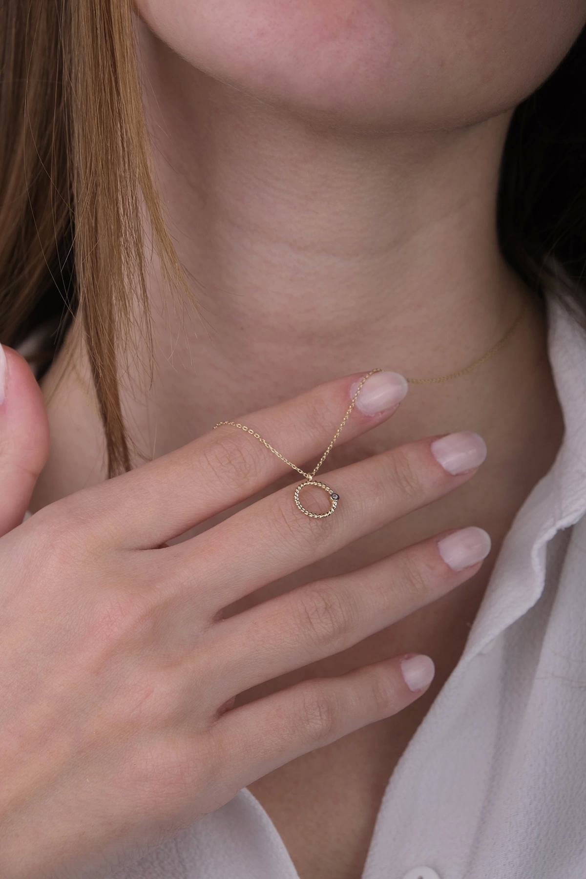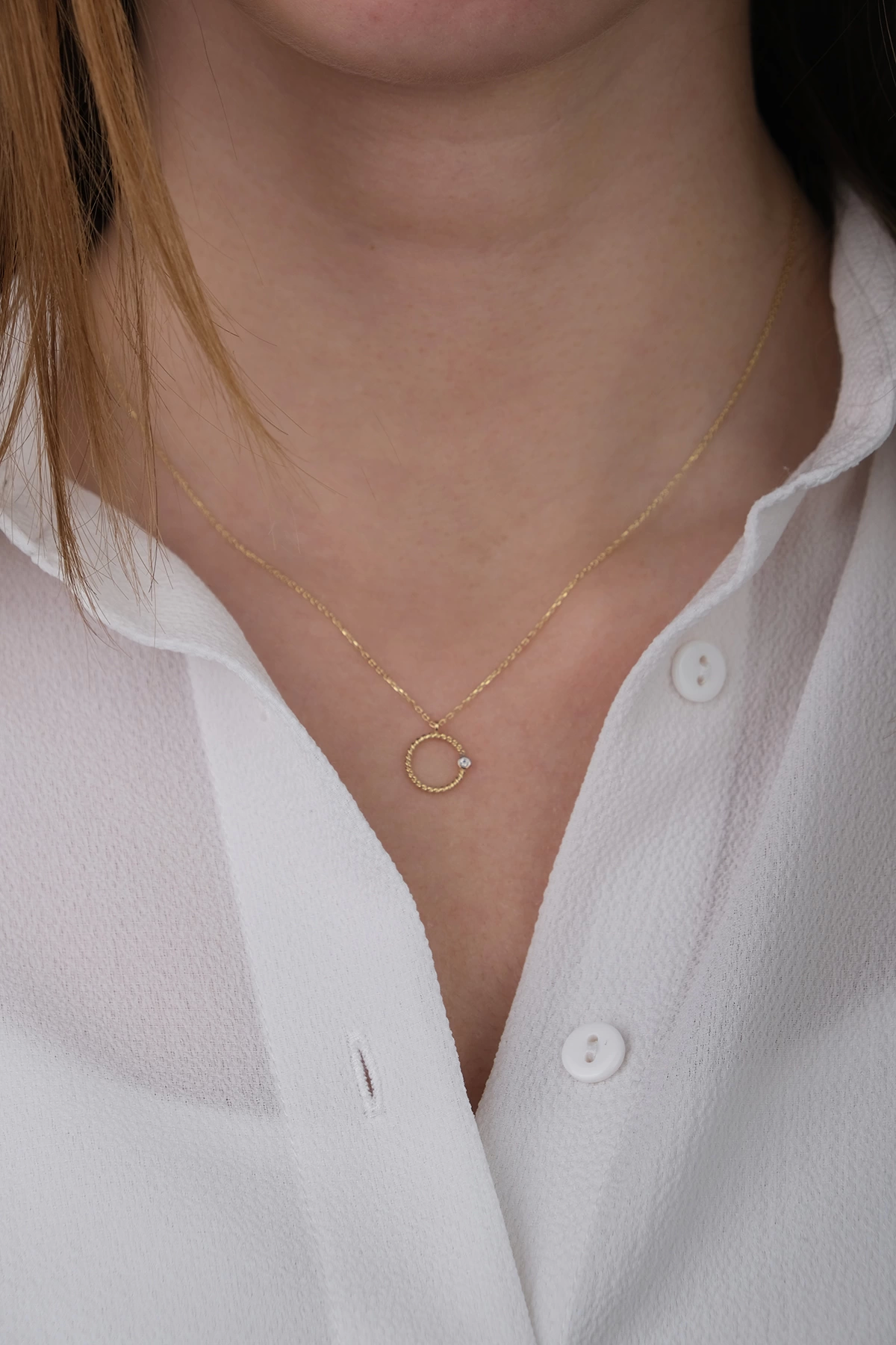 14 Ayar Altın Taşlı Halka Kolye 346