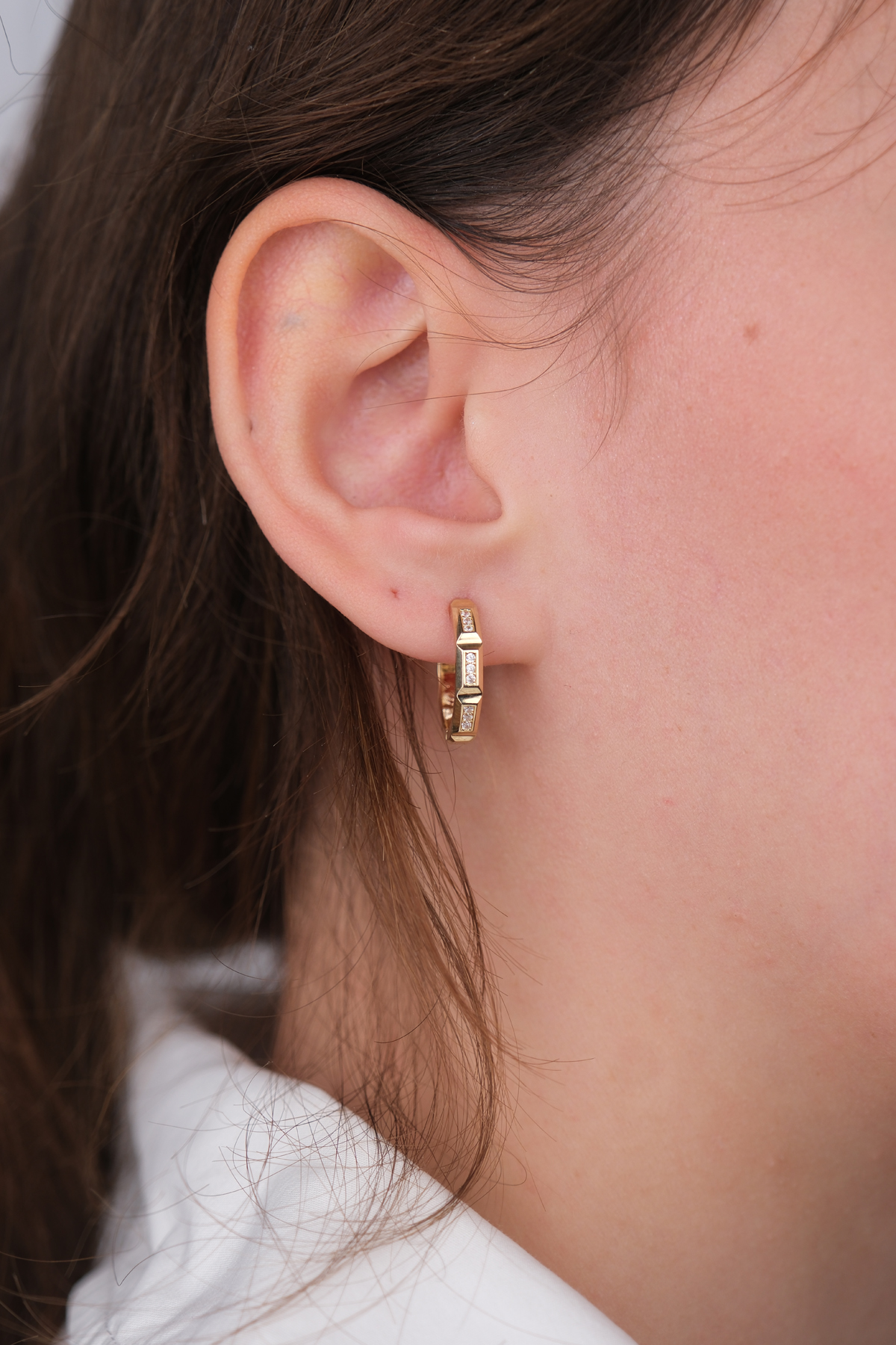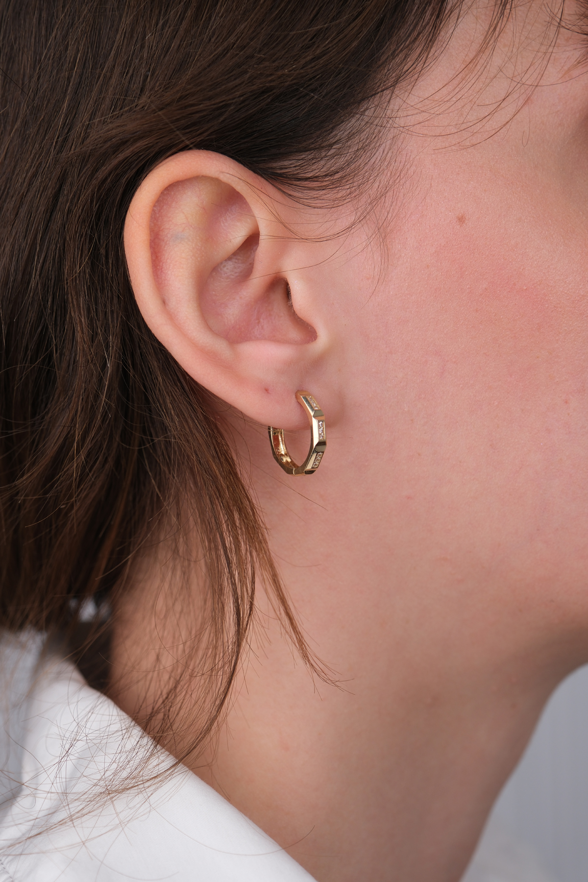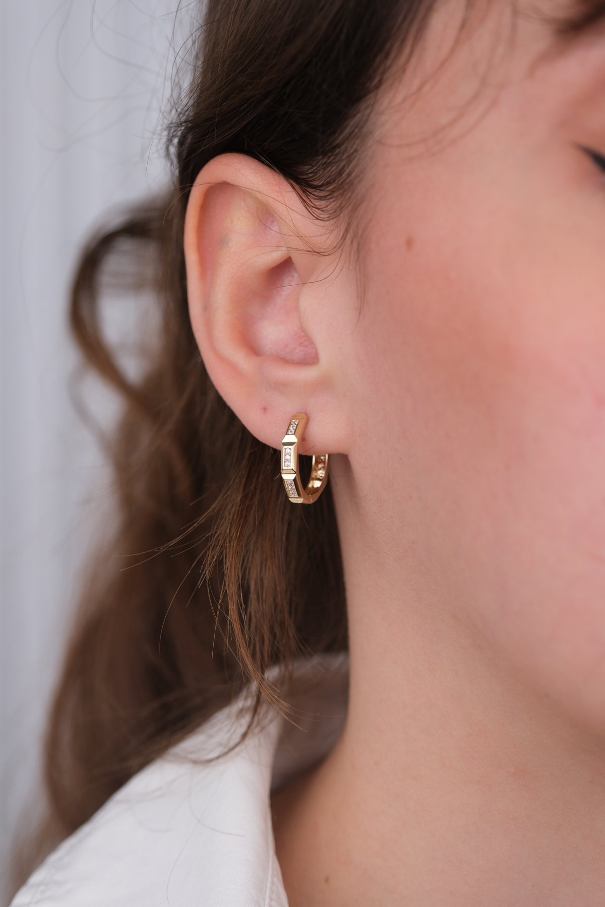 14 Ayar Altın Taşlı Halka Küpe 1183