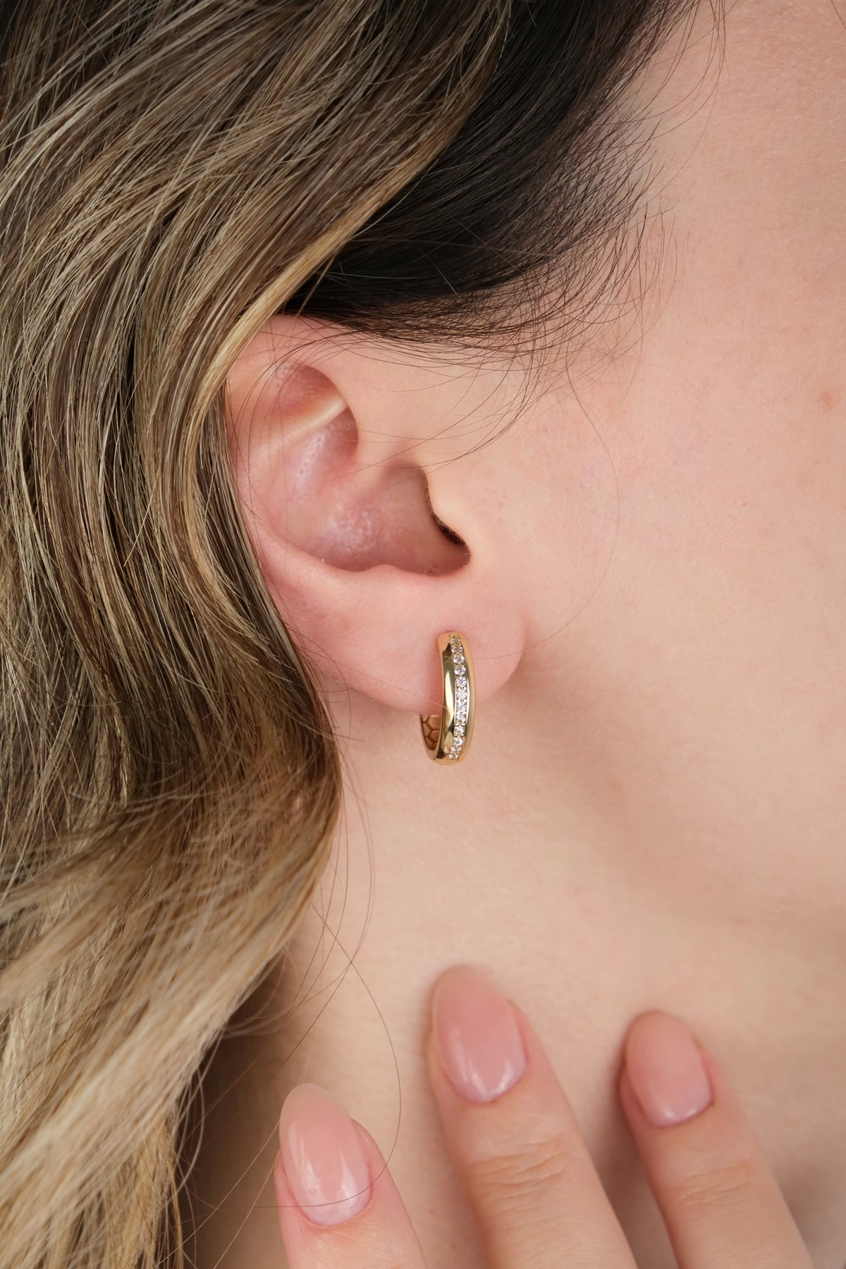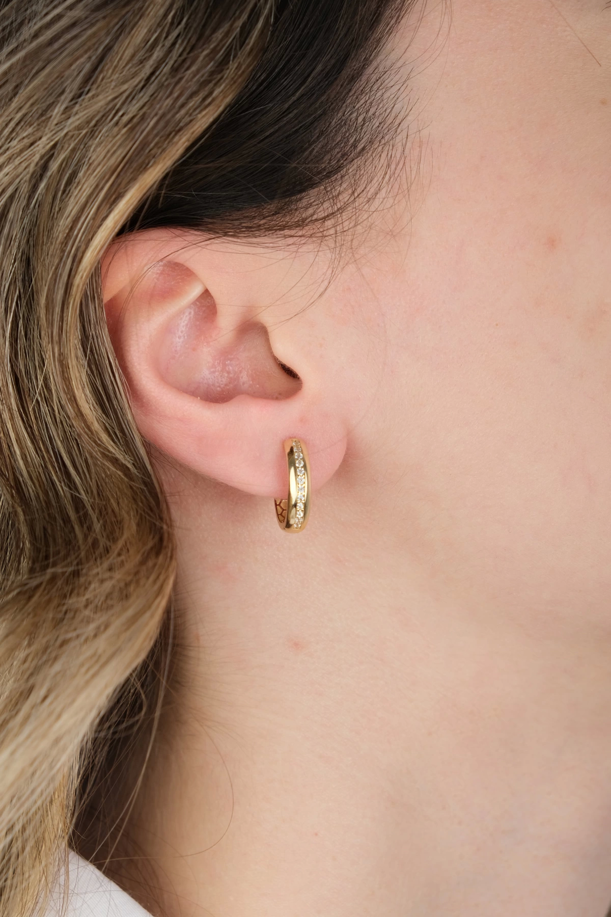 14 Ayar Altın Taşlı Halka Küpe 697