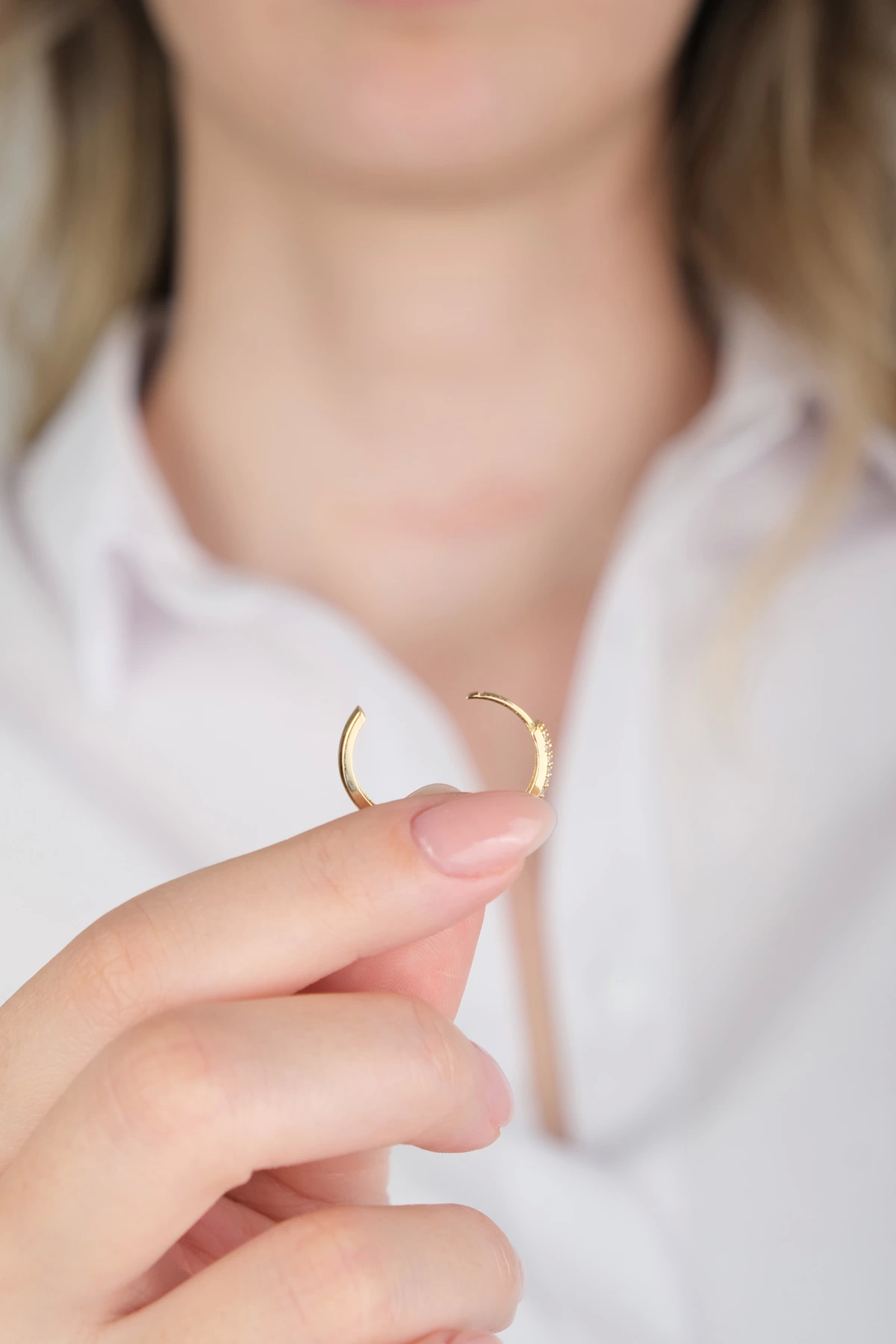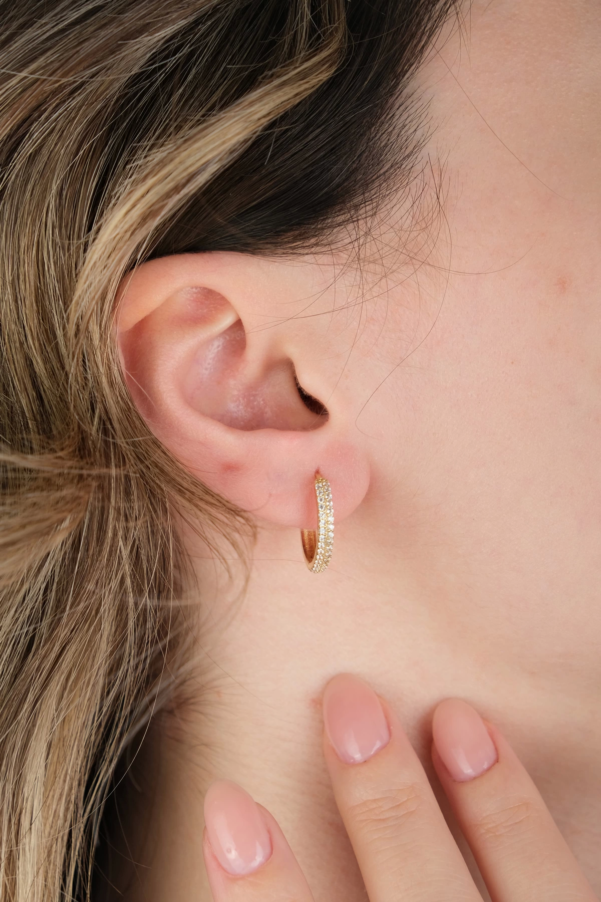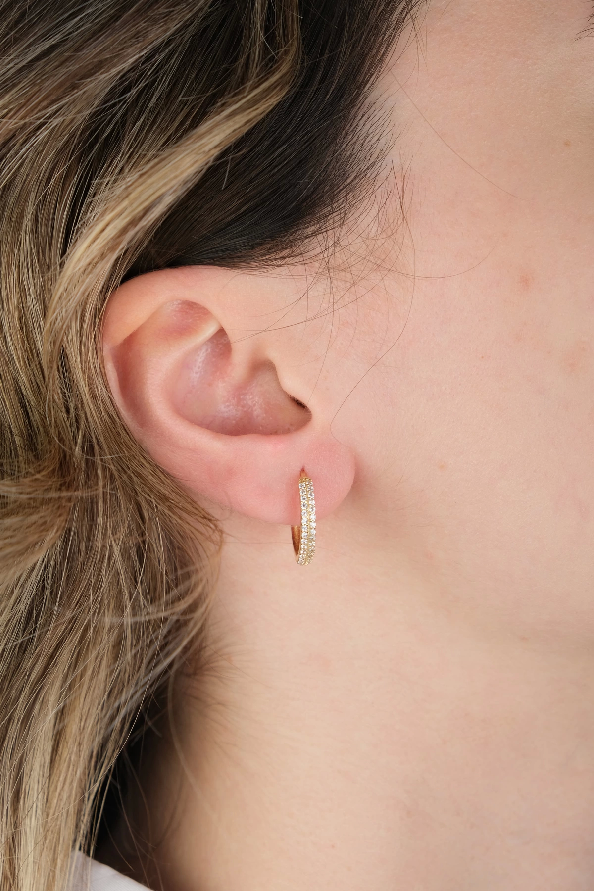 14 Ayar Altın Taşlı Halka Küpe 697