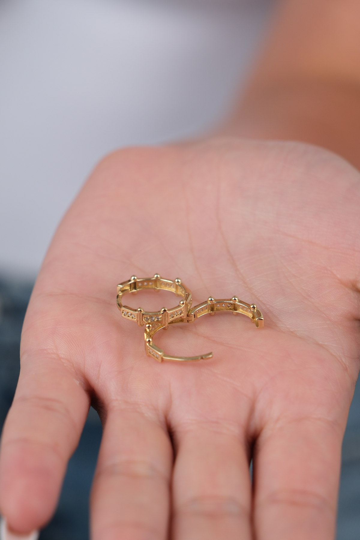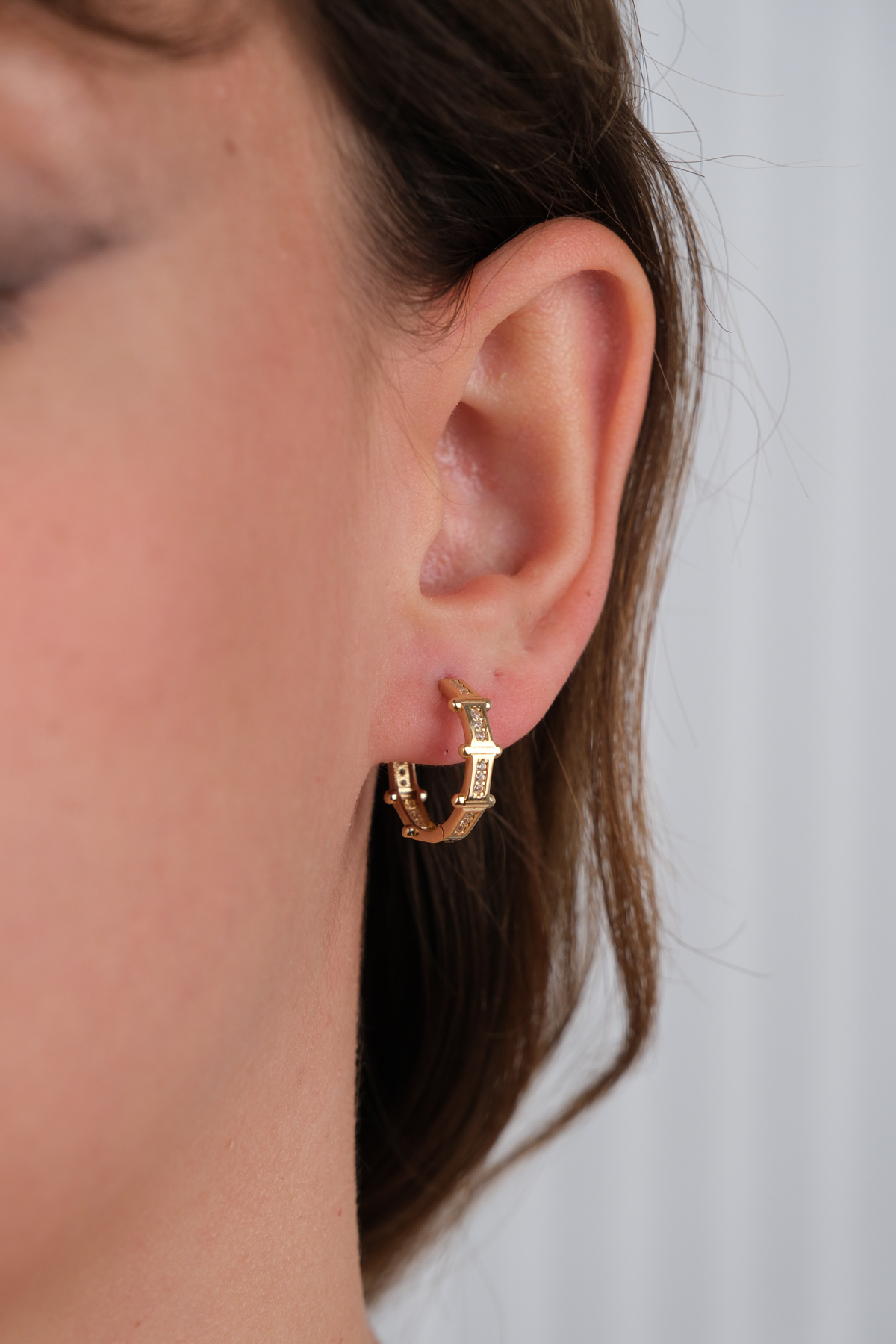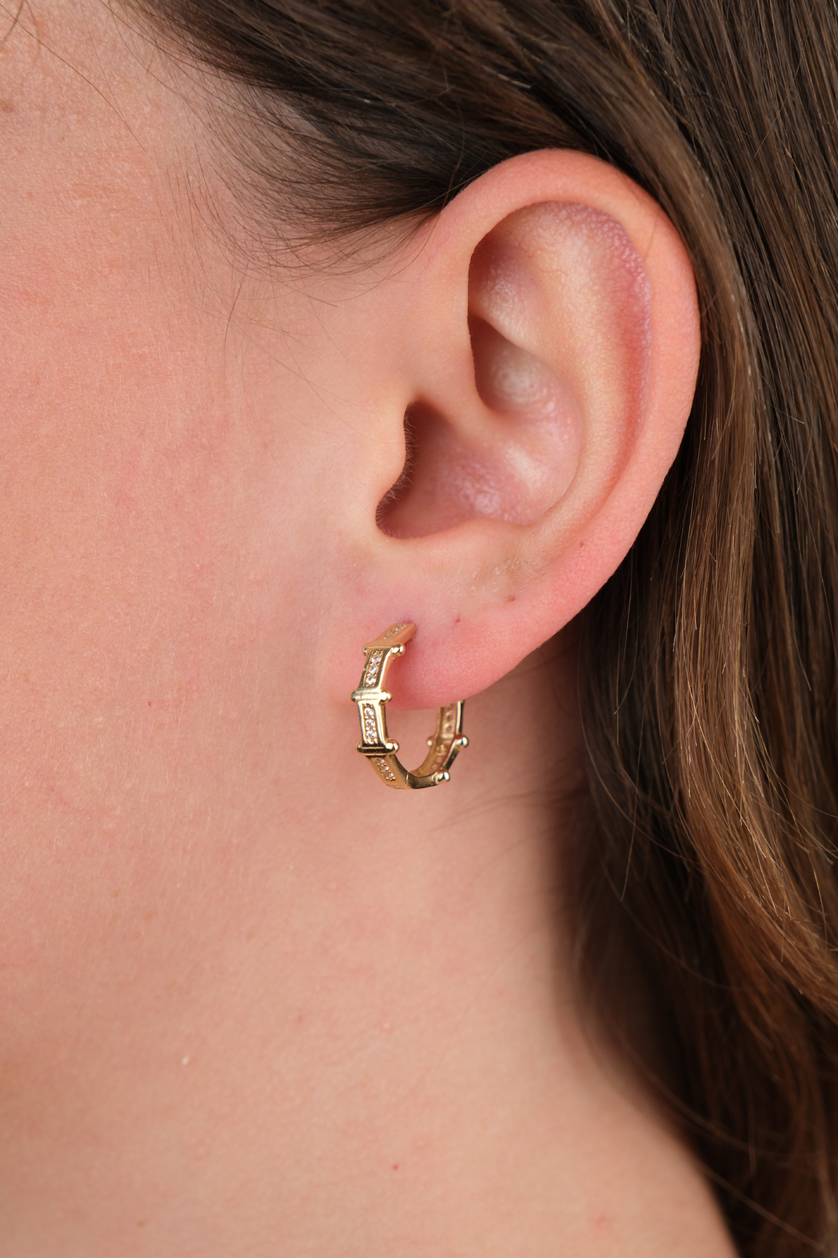 14 Ayar Altın Taşlı Halka Küpe 874
