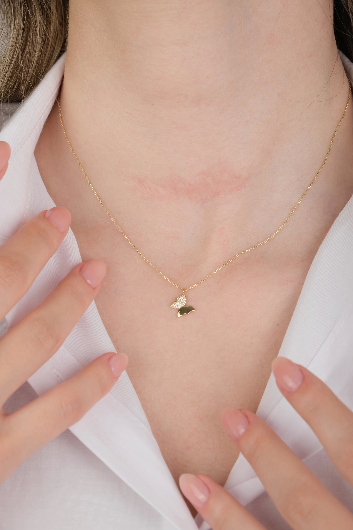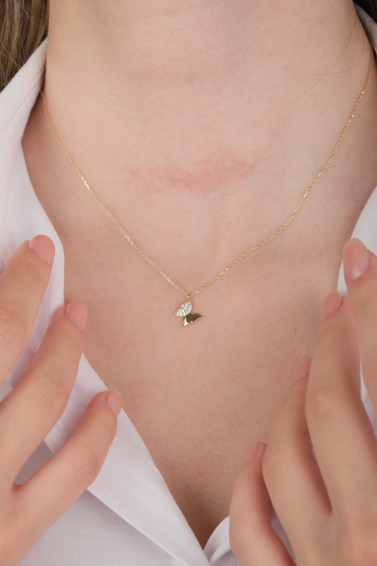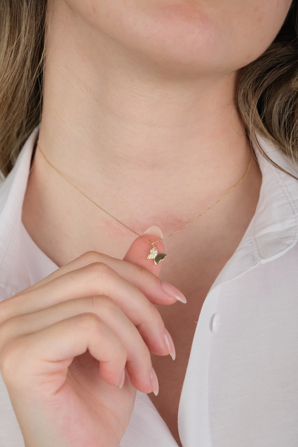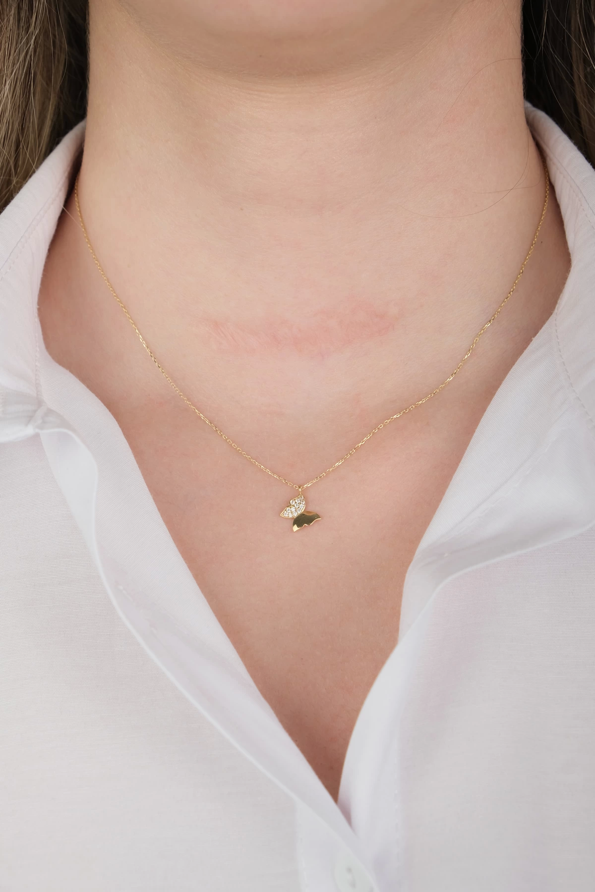 14 Ayar Altın Taşlı Kelebek Kolye 410