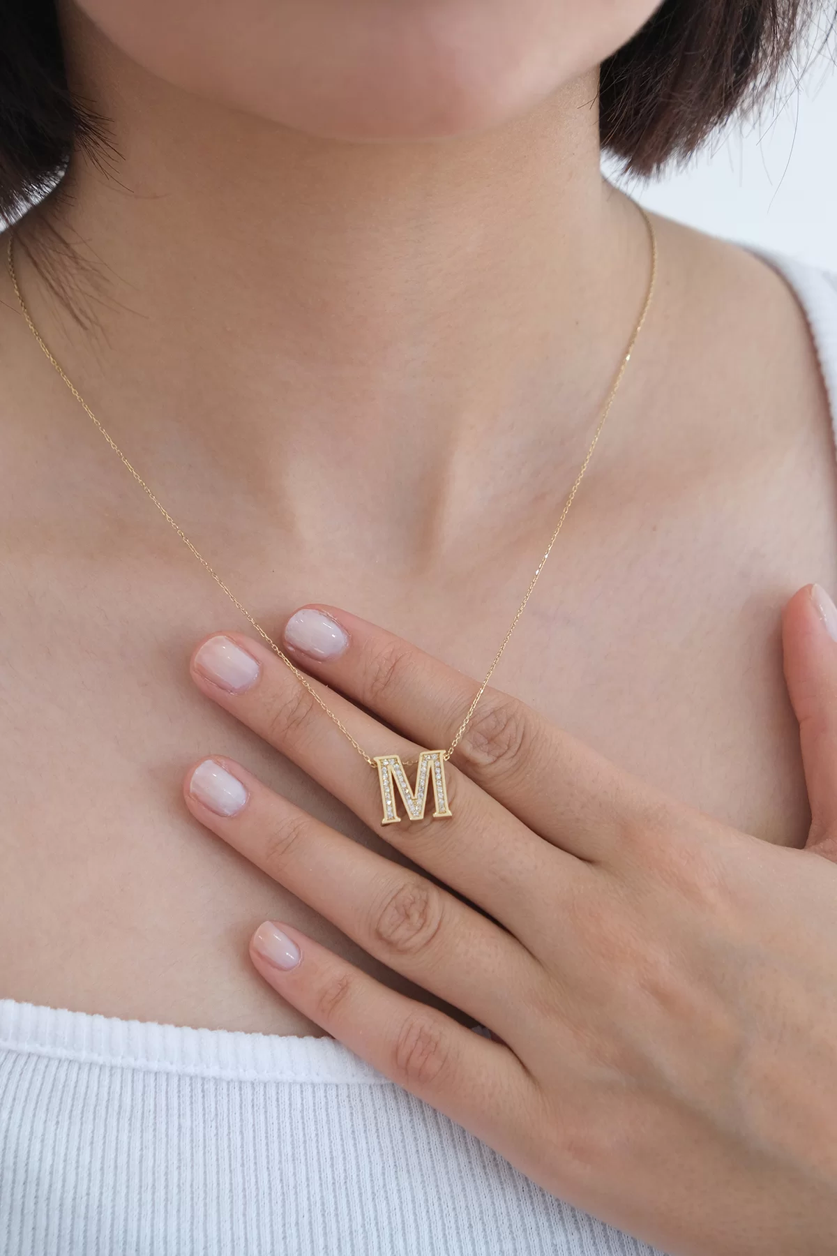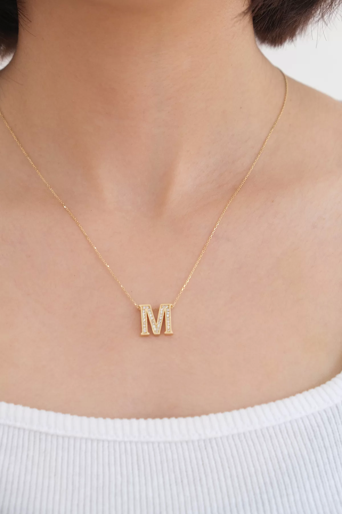 14 Ayar Altın Taşlı M Harf Kolye 179