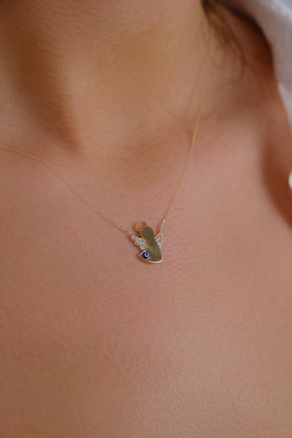 14 Ayar Altın Taşlı Nazar Boncuklu Melek Kolye 154