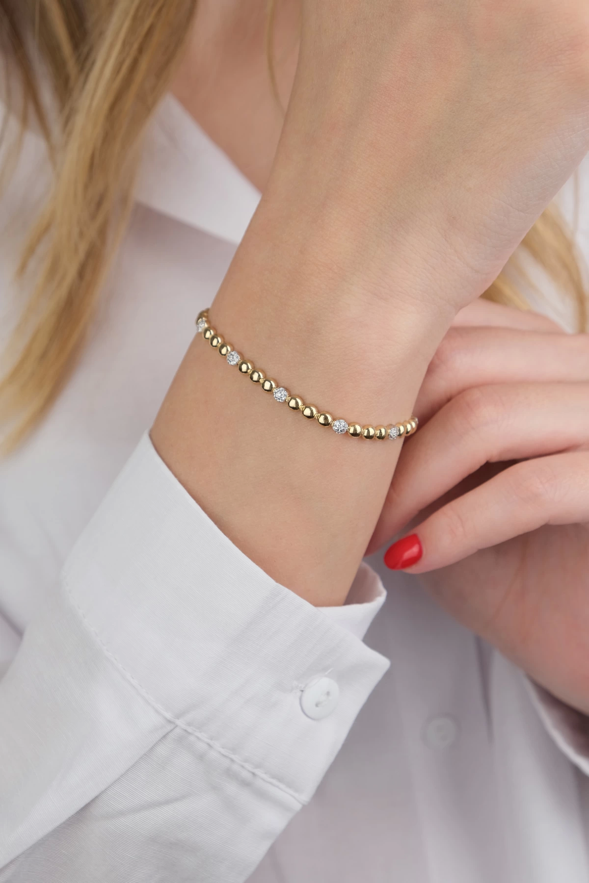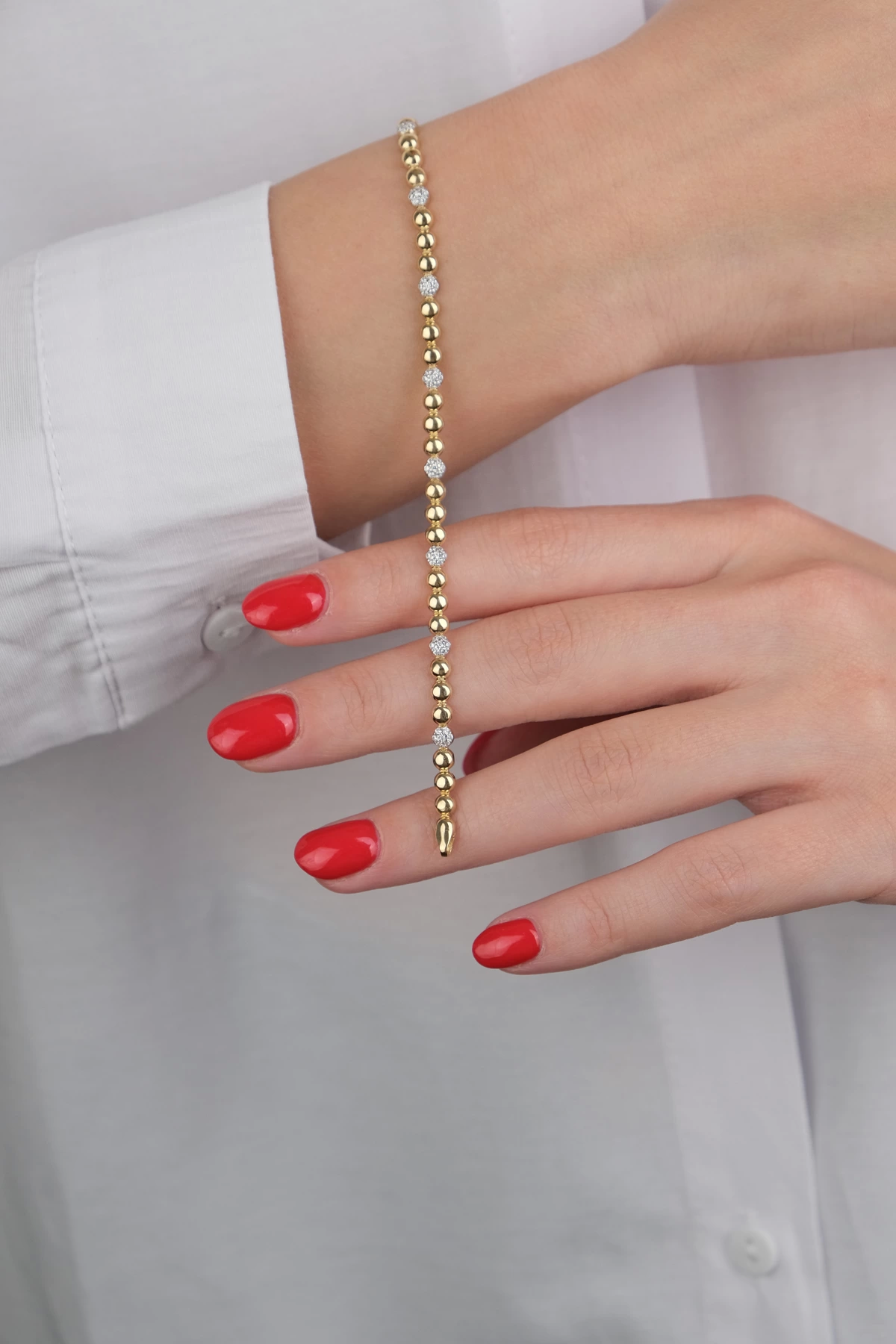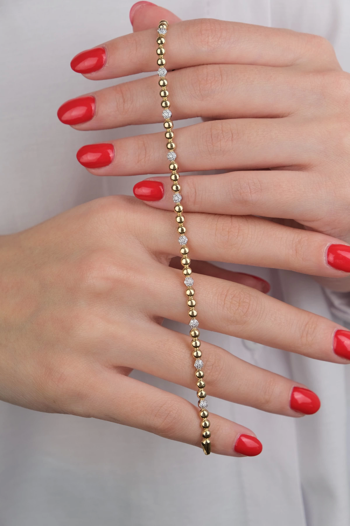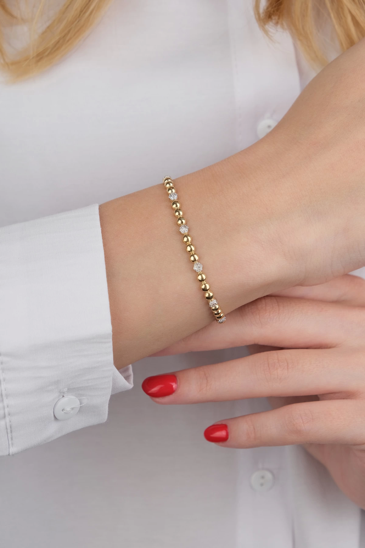 14 Ayar Altın Taşlı Top Sıralı Bileklik 635