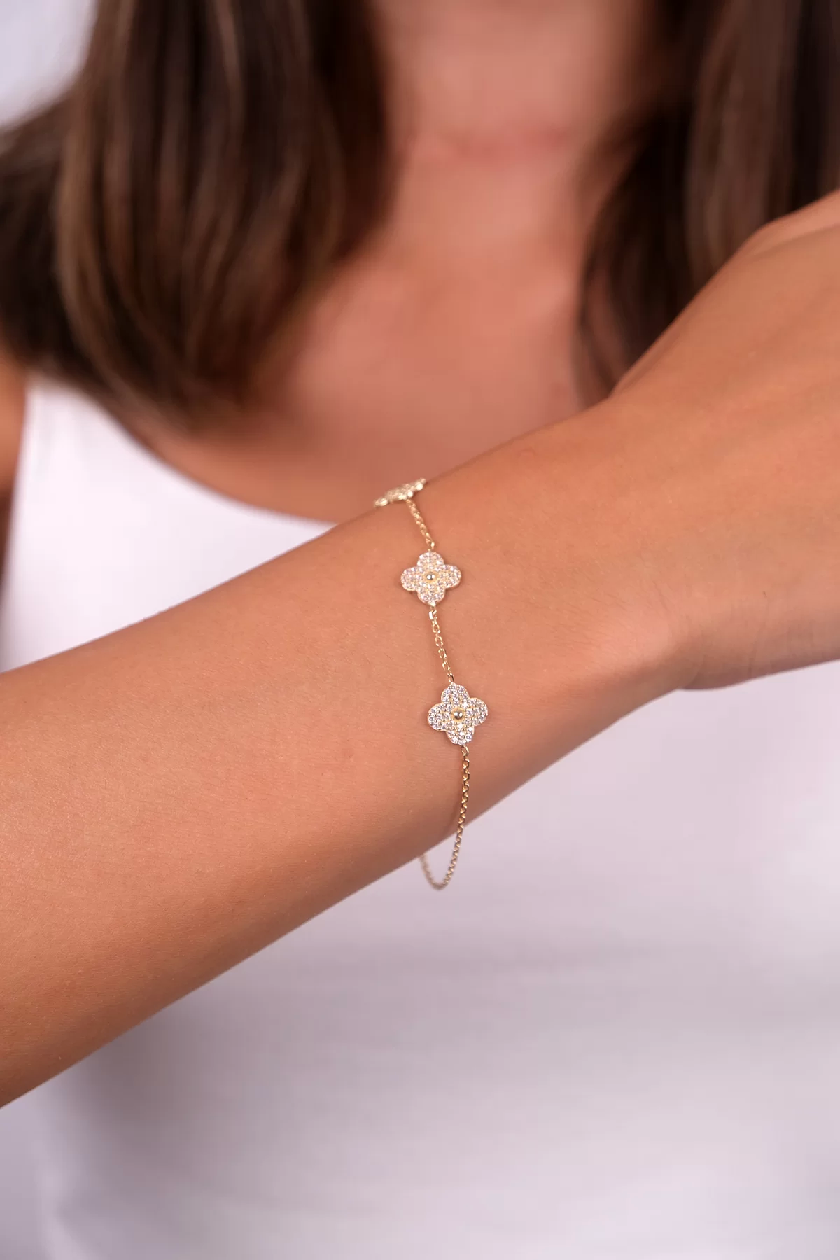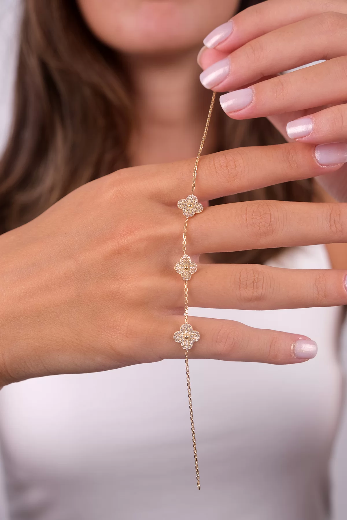 14 Ayar Altın Taşlı Üçlü Yonca Bileklik 24
