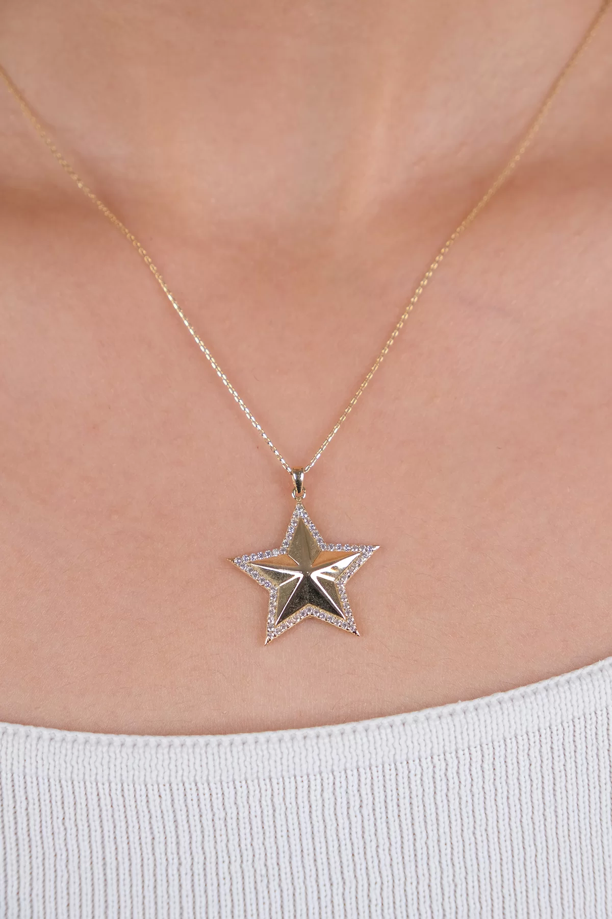 14 Ayar Altın Taşlı Yıldız Kolye 149