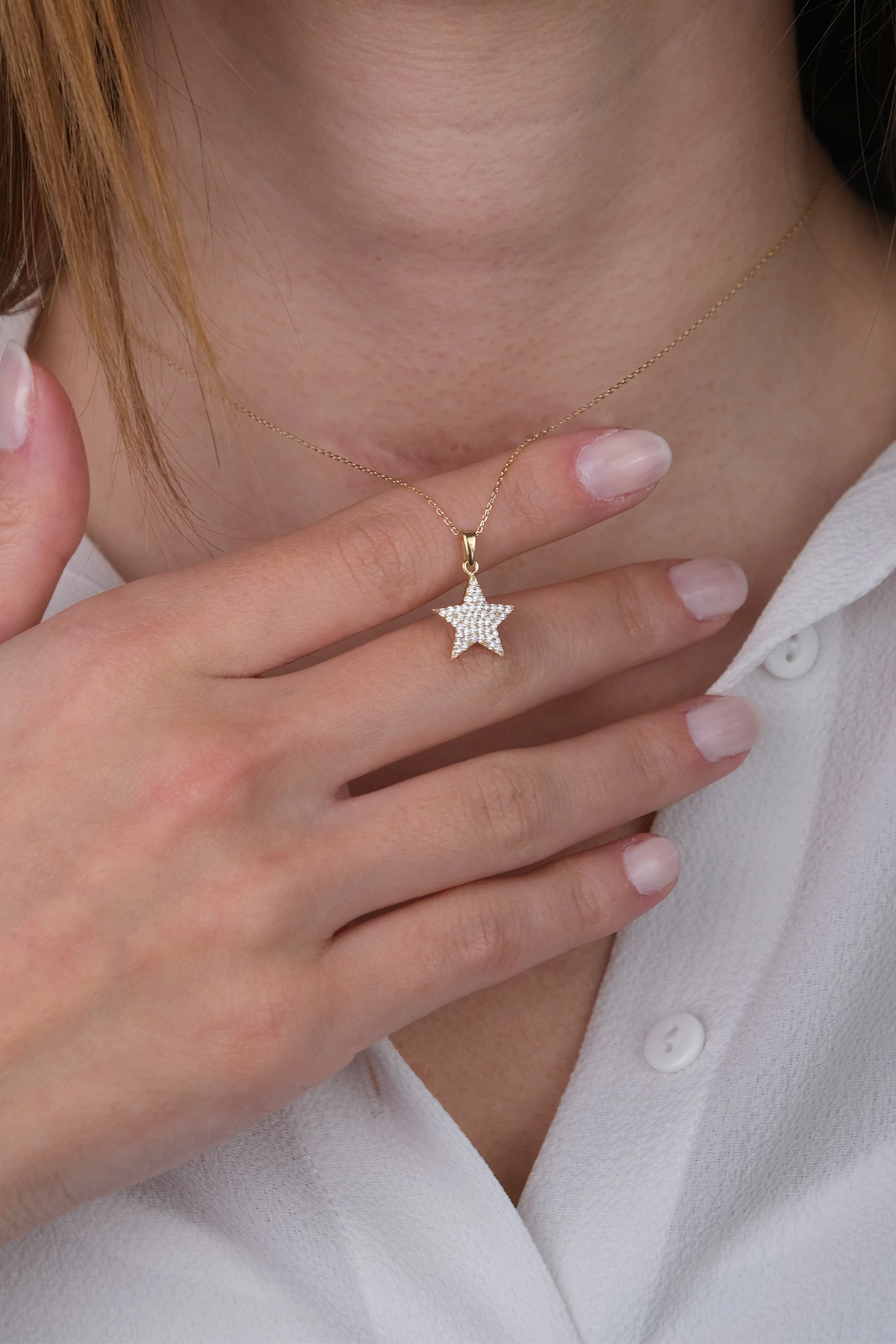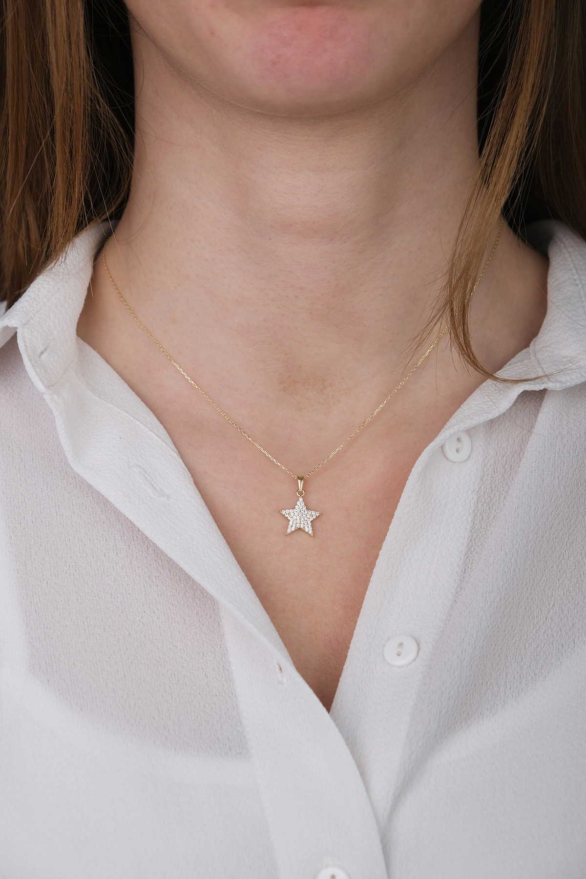 14 Ayar Altın Taşlı Yıldız Kolye 348