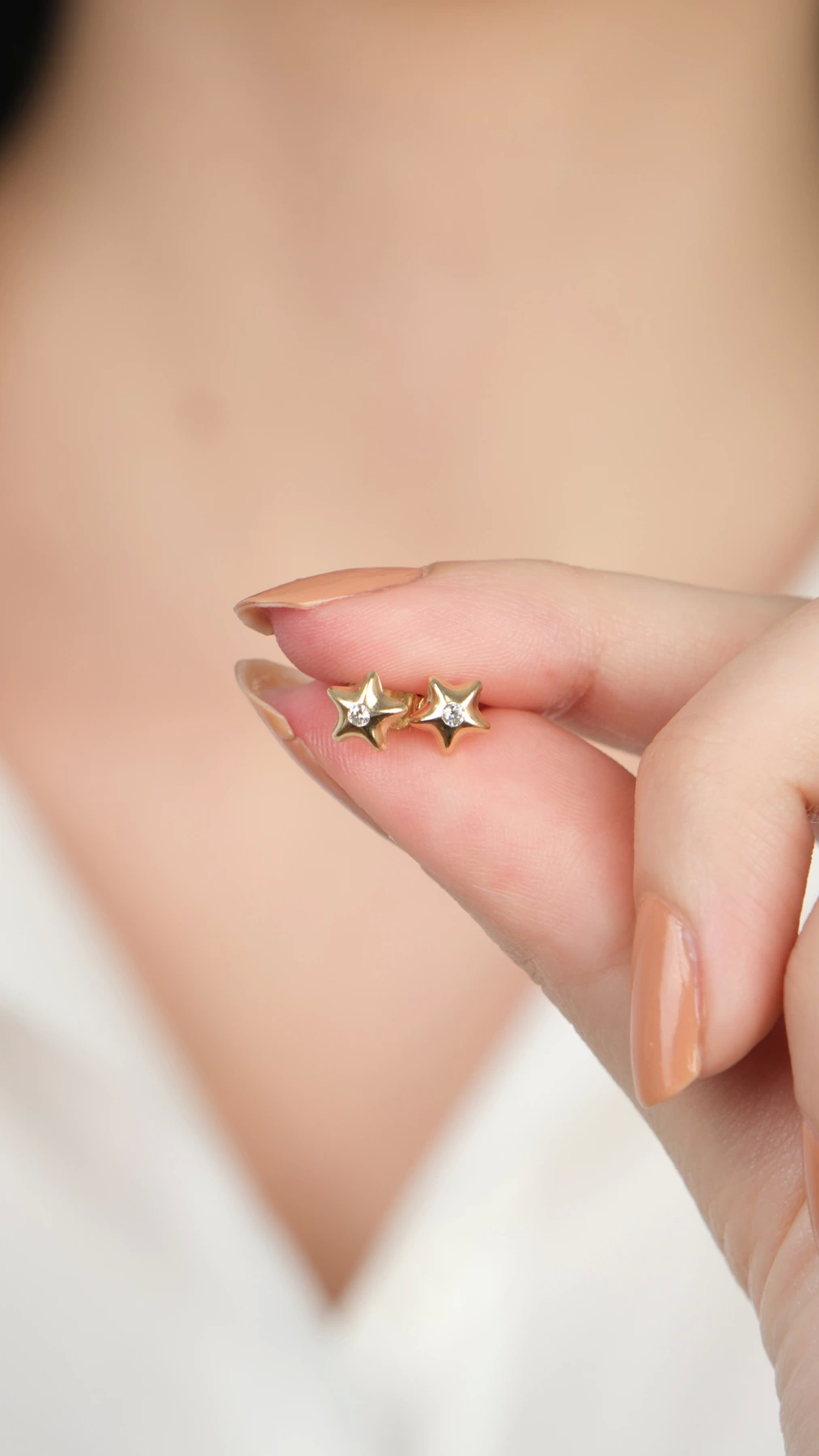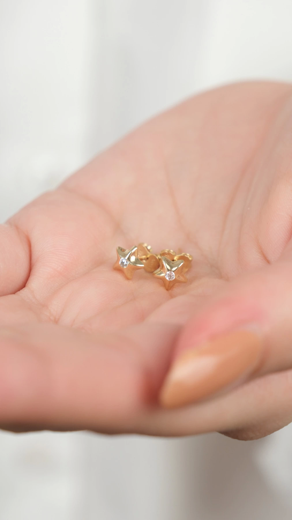 14 Ayar Altın Taşlı Yıldız Vidalı Küpe