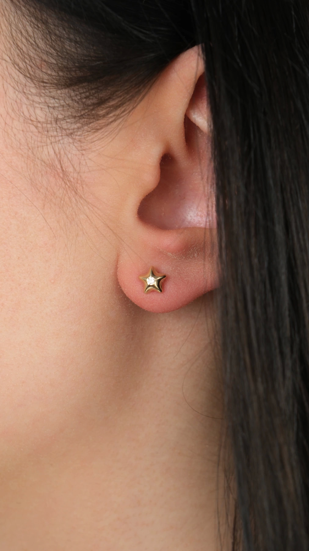 14 Ayar Altın Vidalı Yıldız Küpe 1030