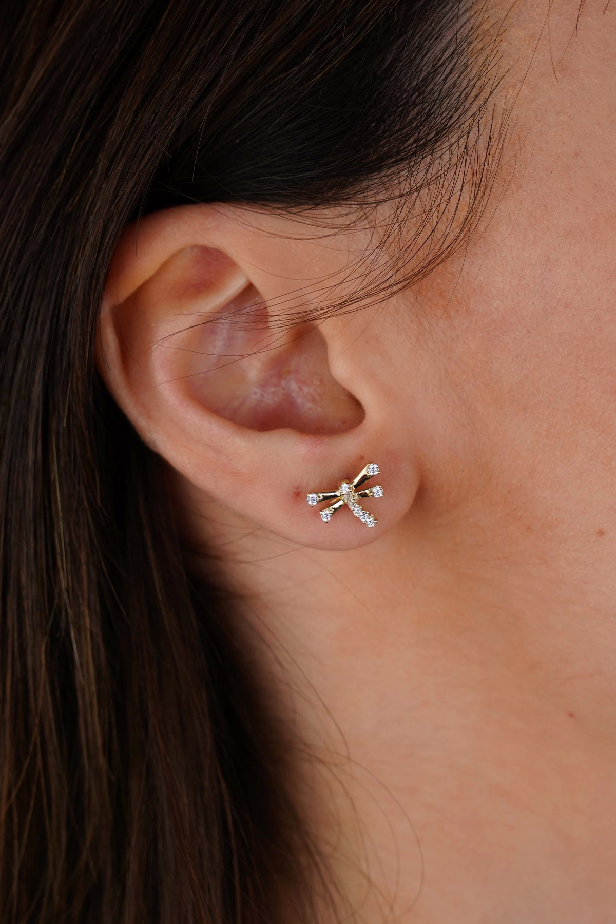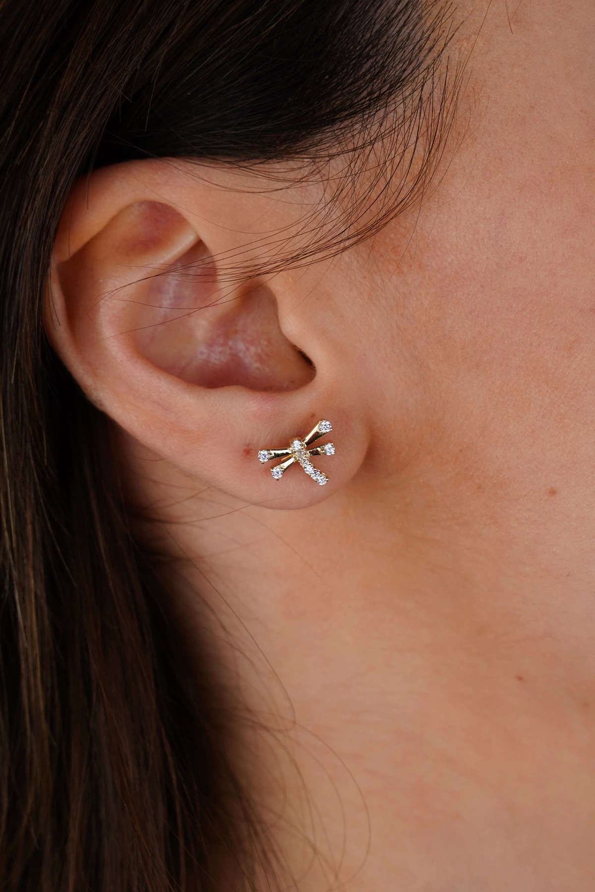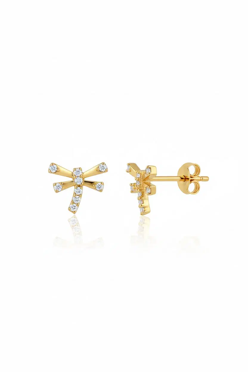 14 Ayar Altın Taşlı Yusufçuk Küpe 679