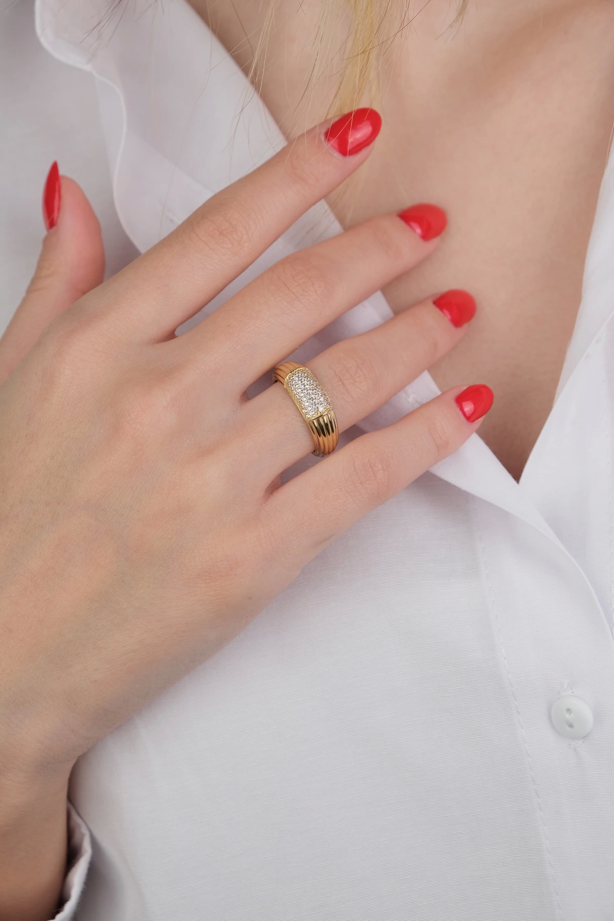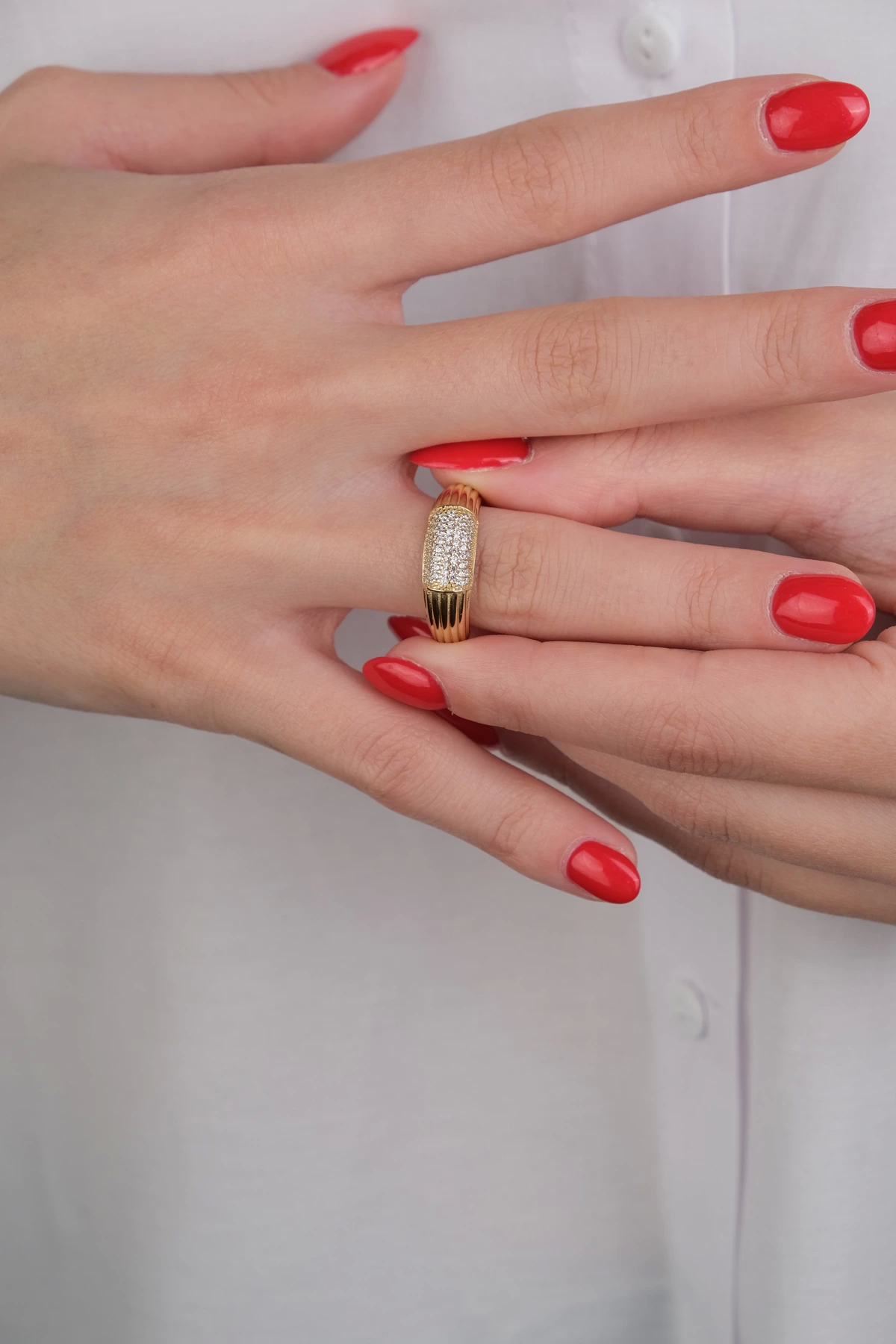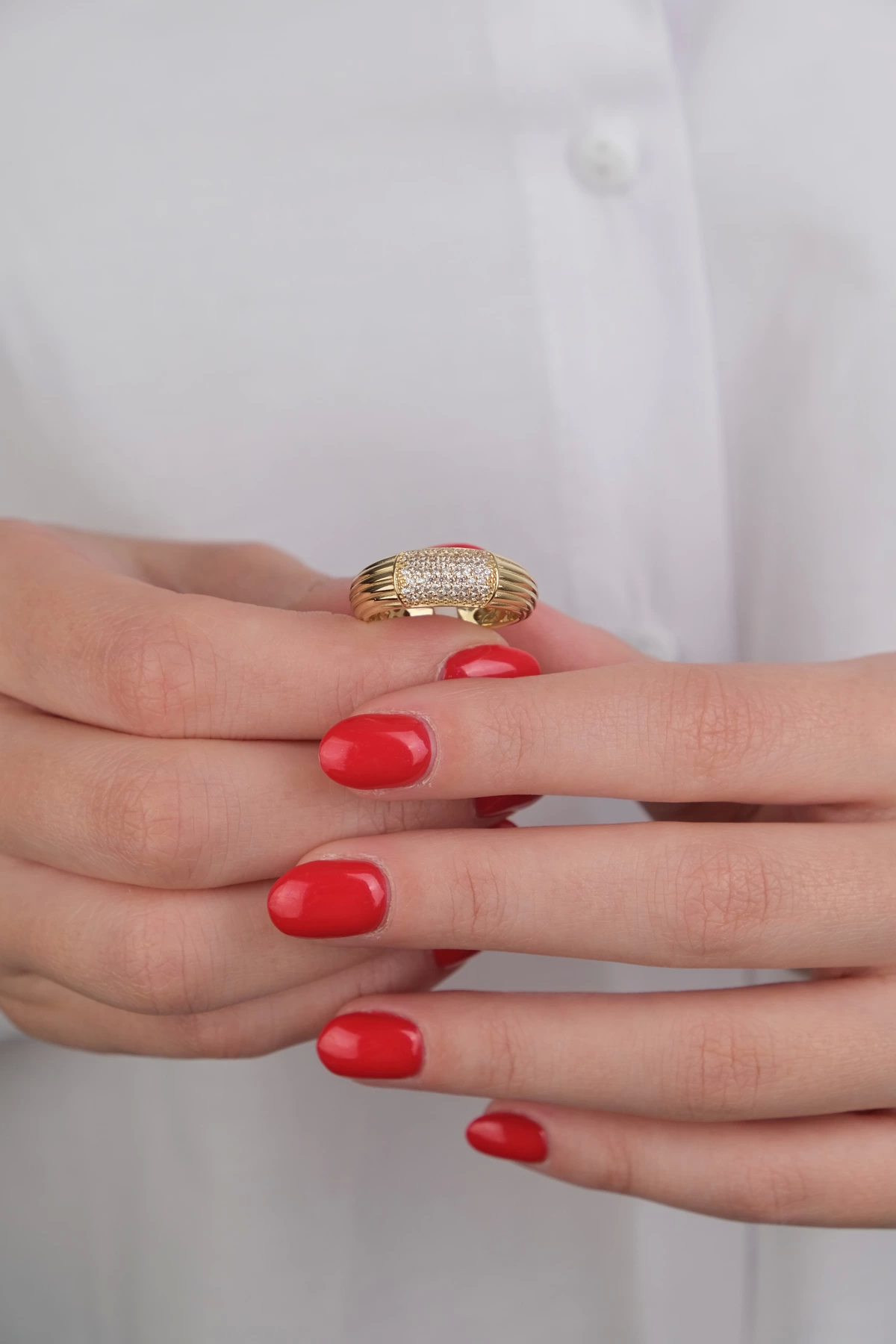 14 Ayar Altın Taşlı Oval Yüzük 639
