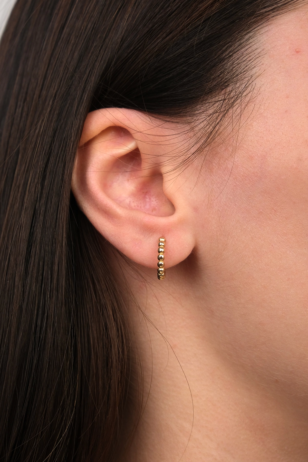 14 Ayar Altın Top Sıralı Halka Küpe 2