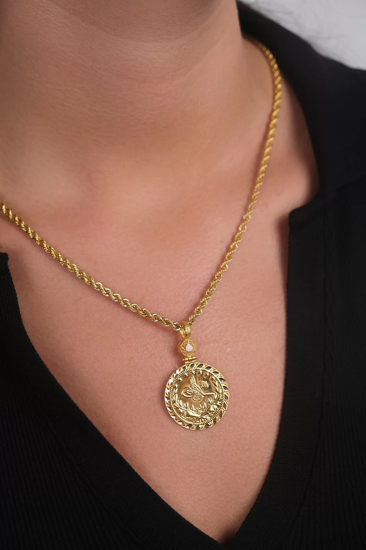 14 Ayar Altın Tuğralı Kolye Ucu 62