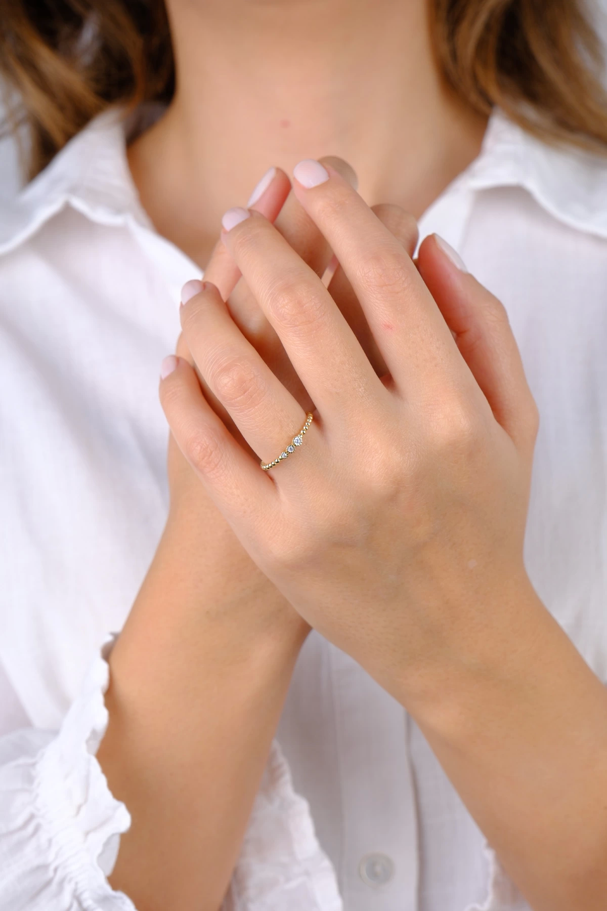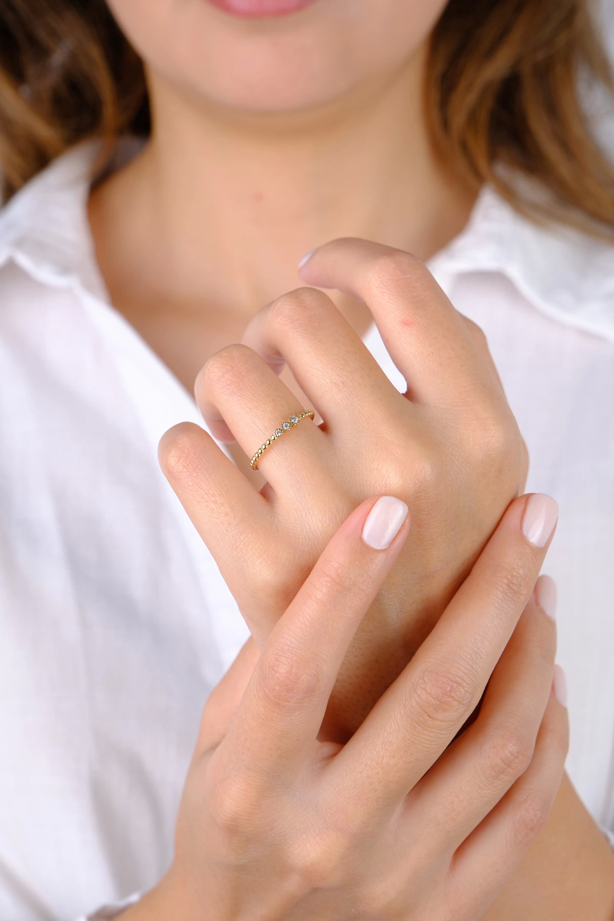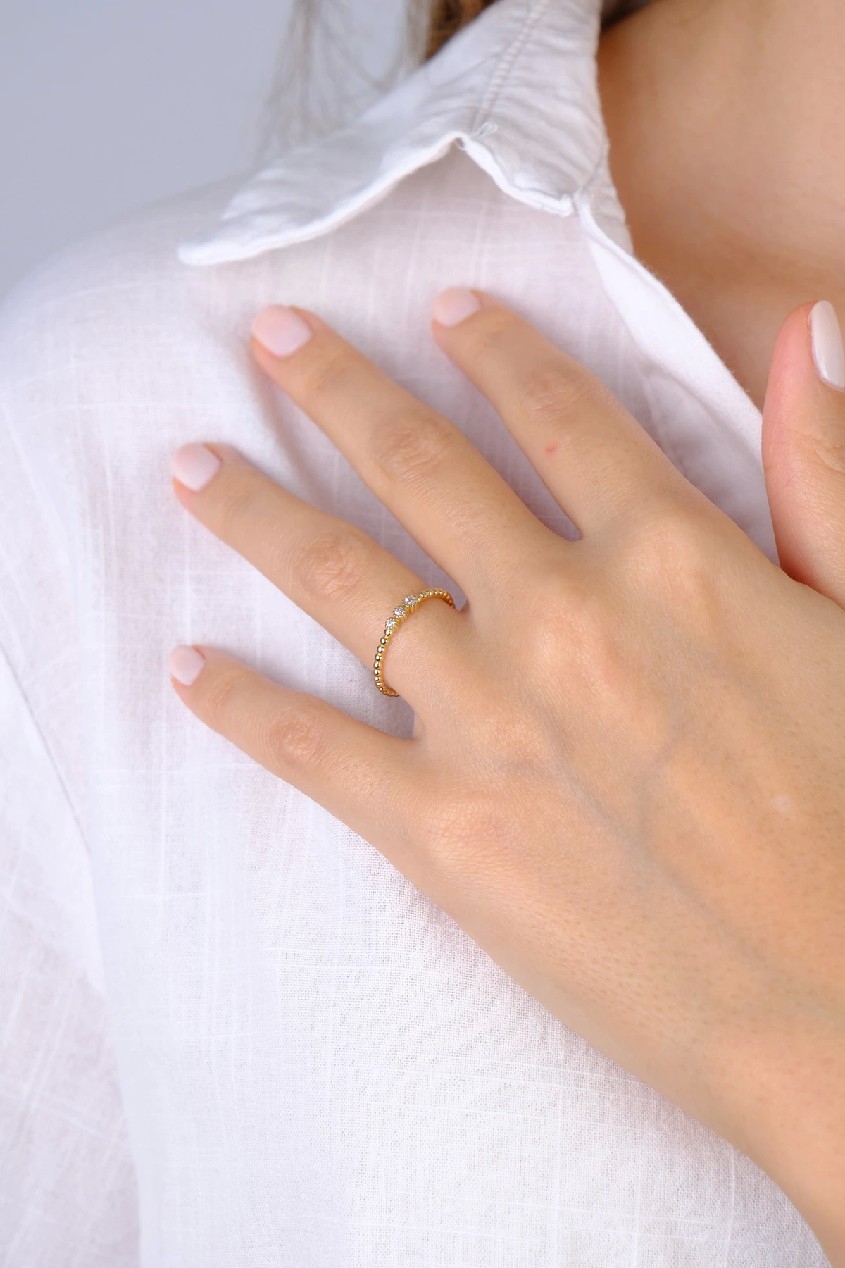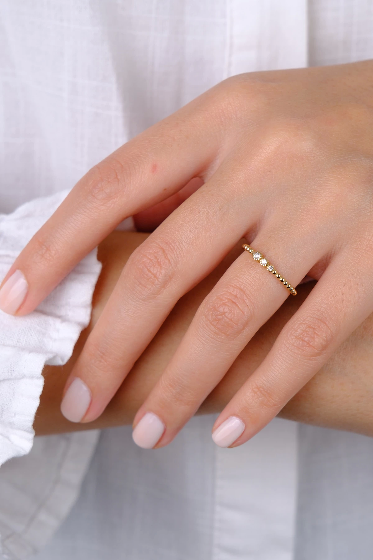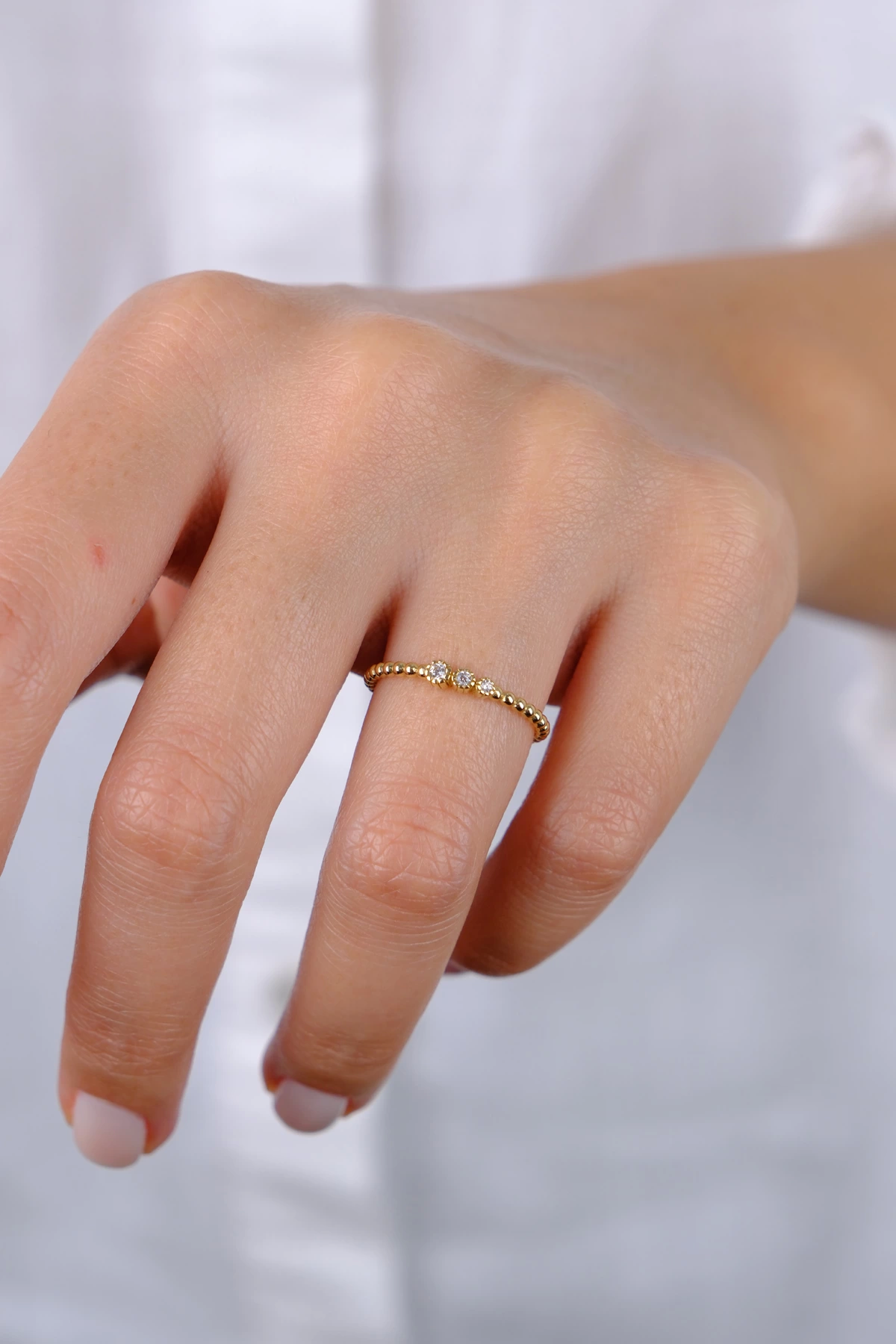 14 Ayar Altın Üç Taş Minimal Yüzük 770