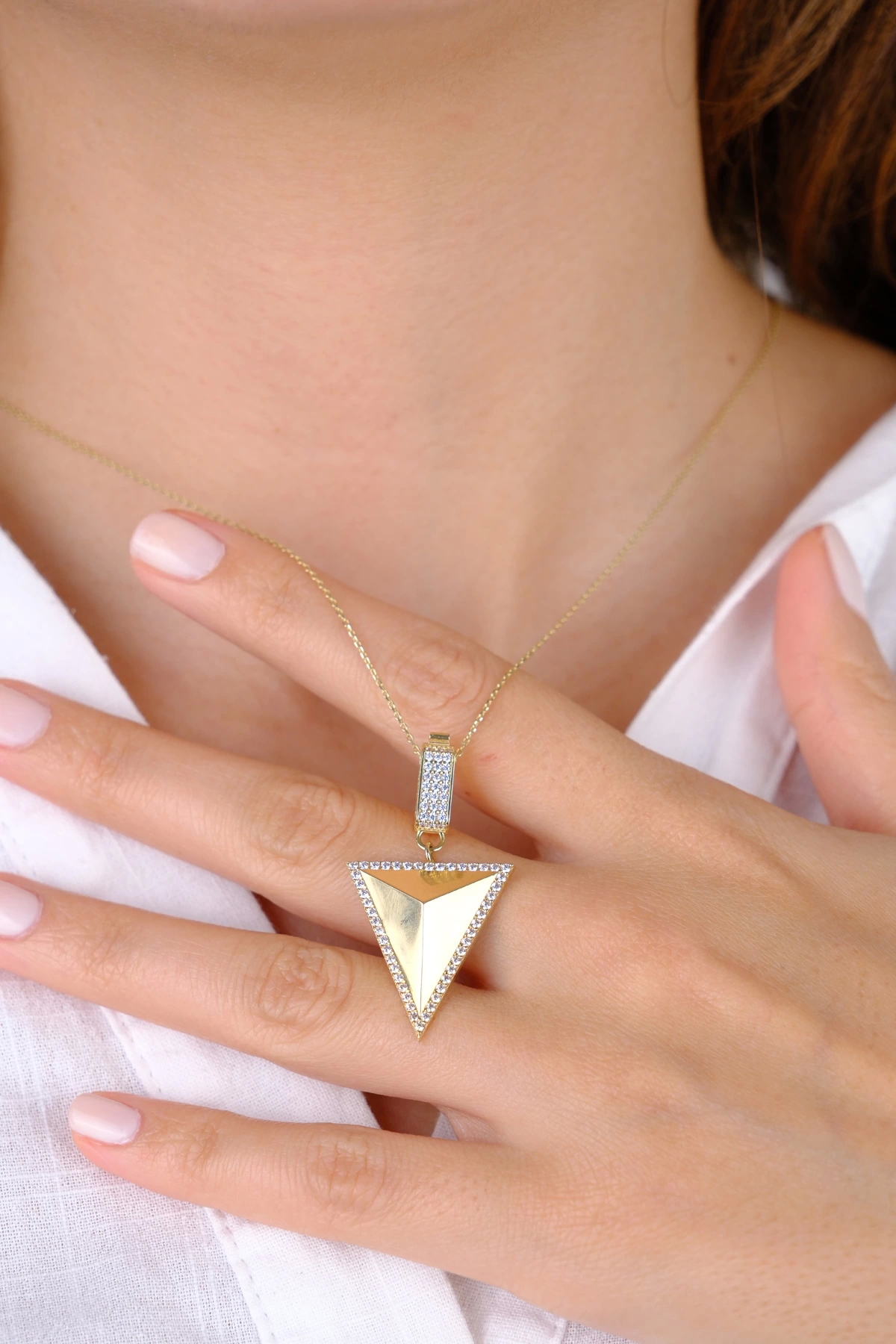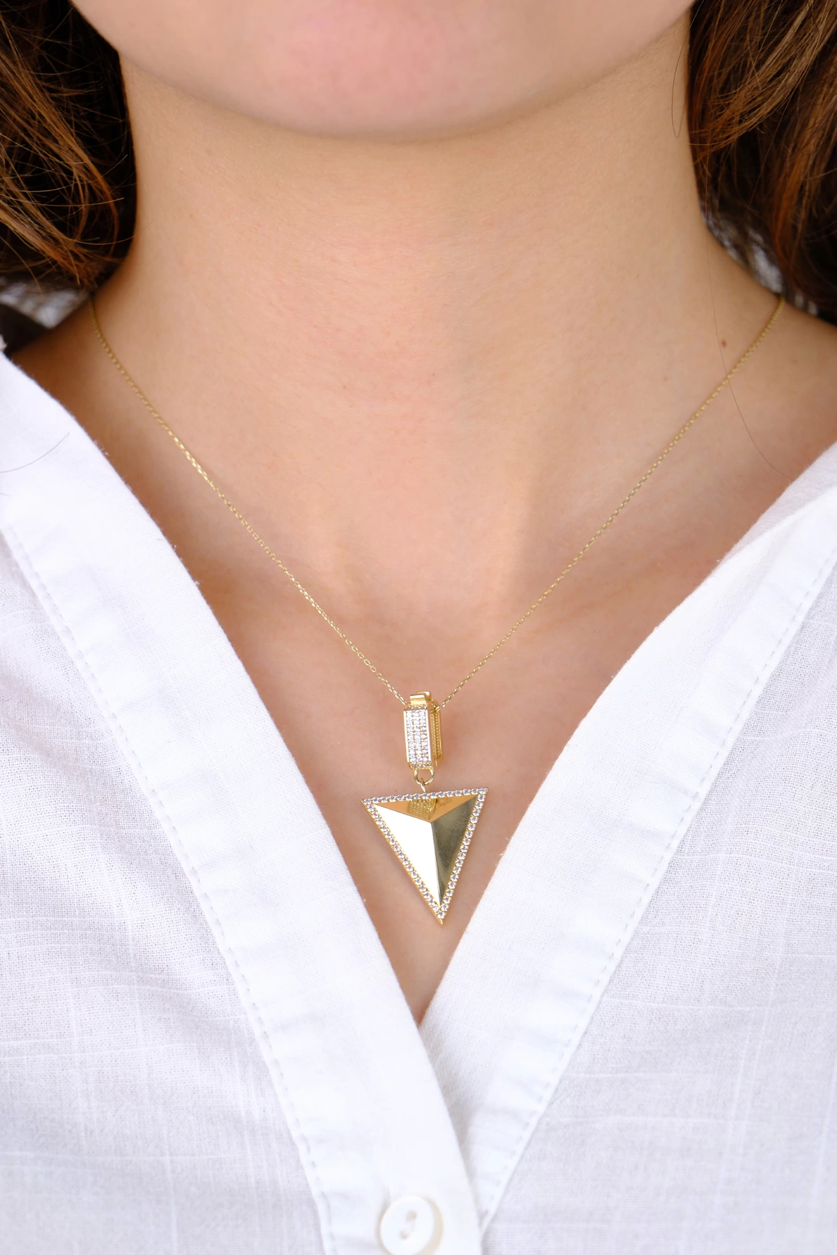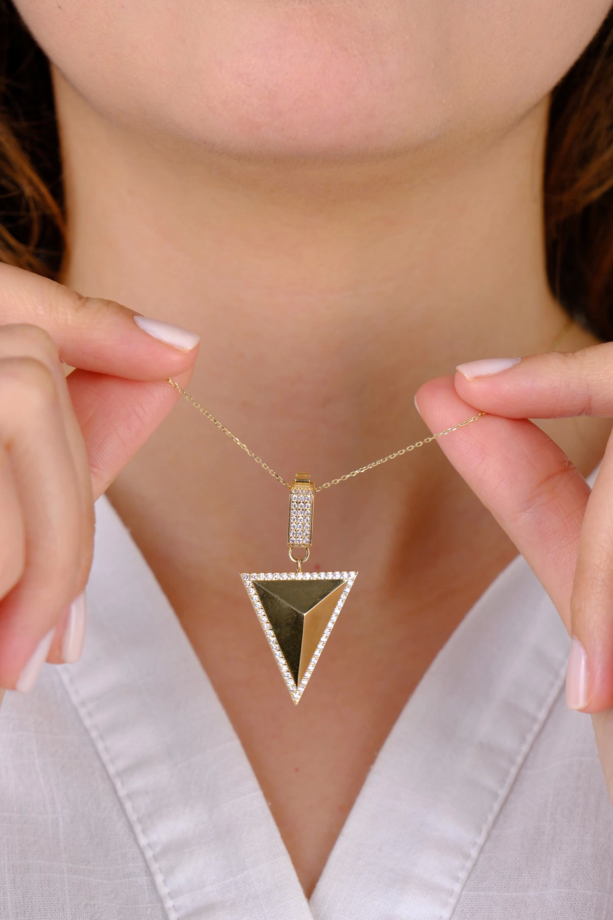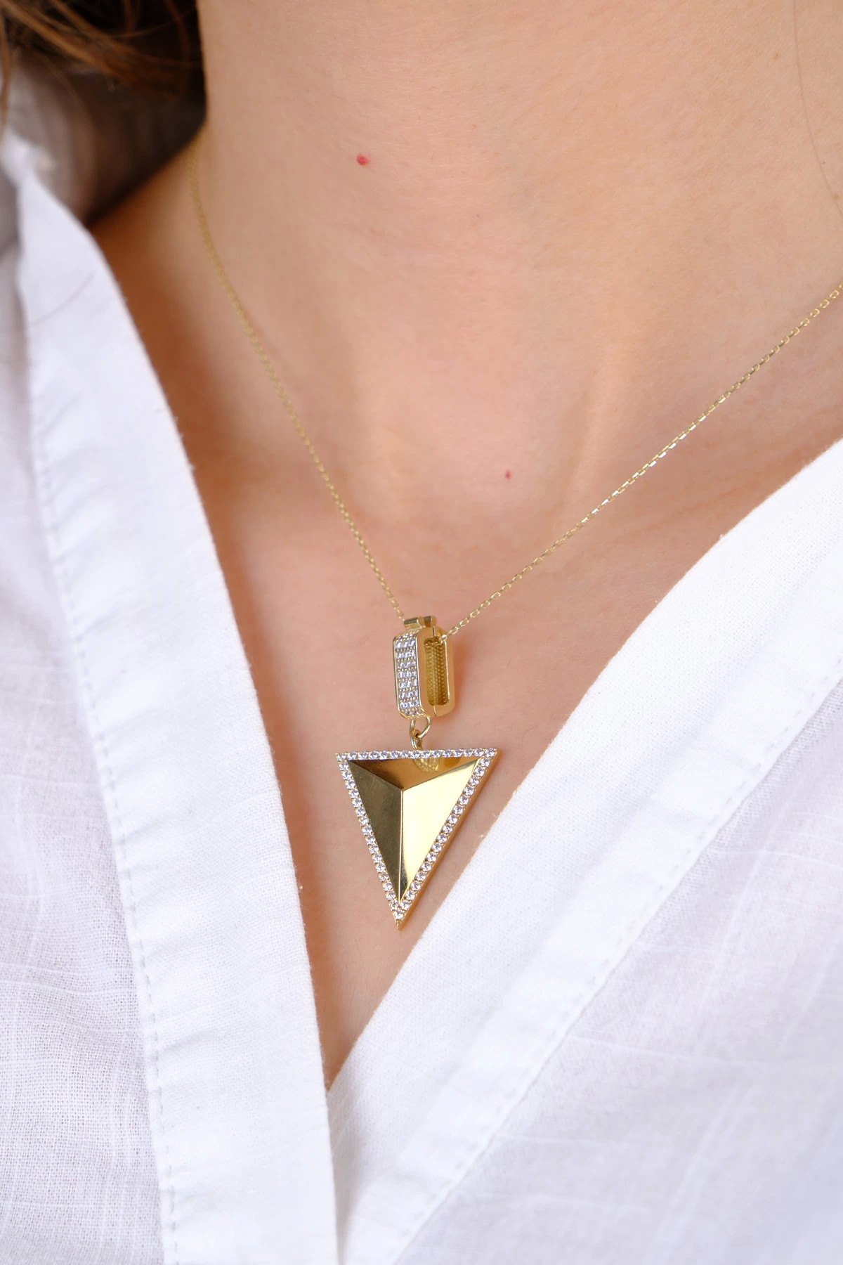 14 Ayar Altın  Üçgen Taşlı Kolye Ucu 284