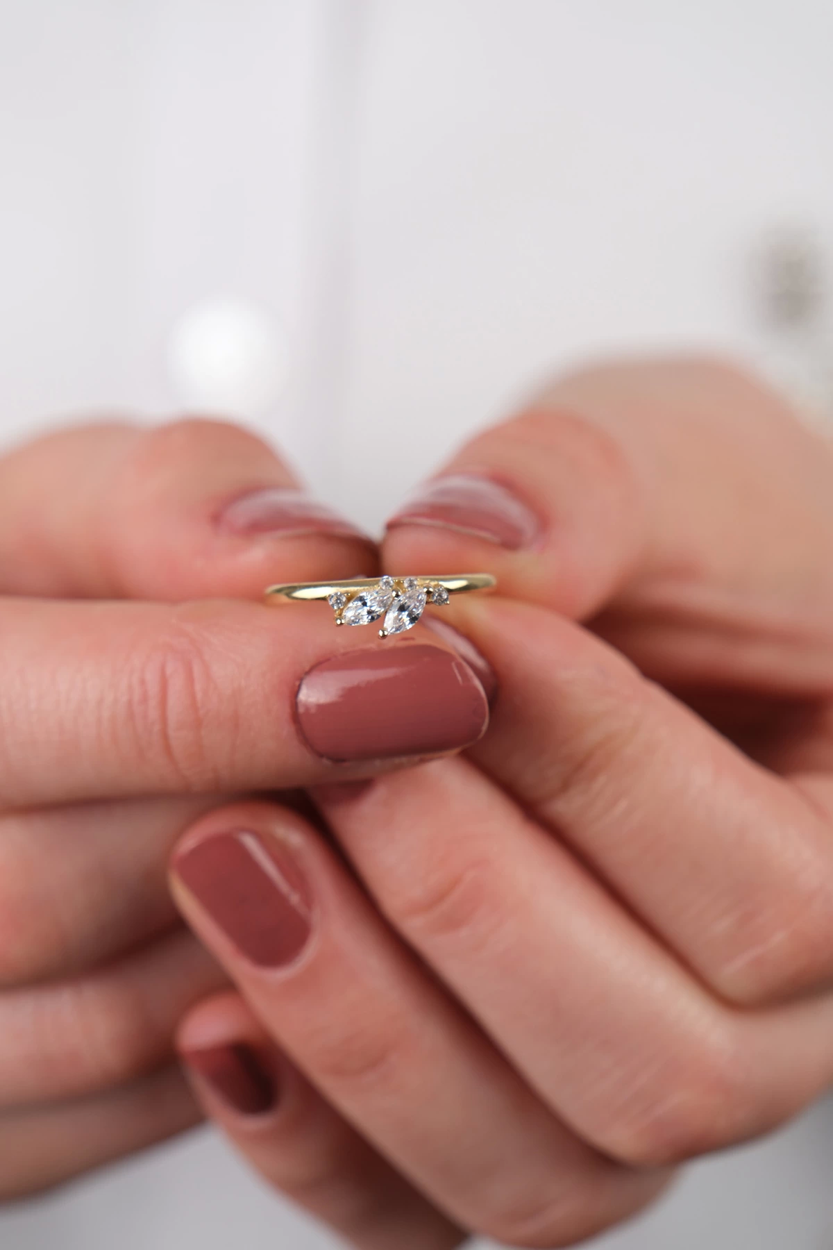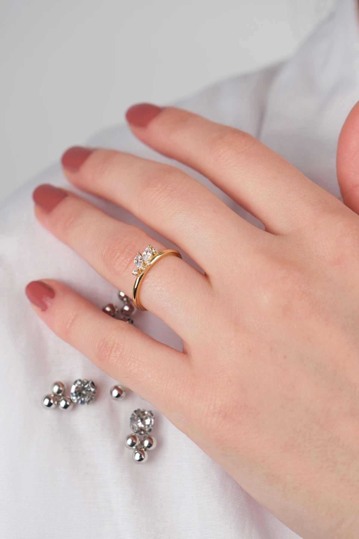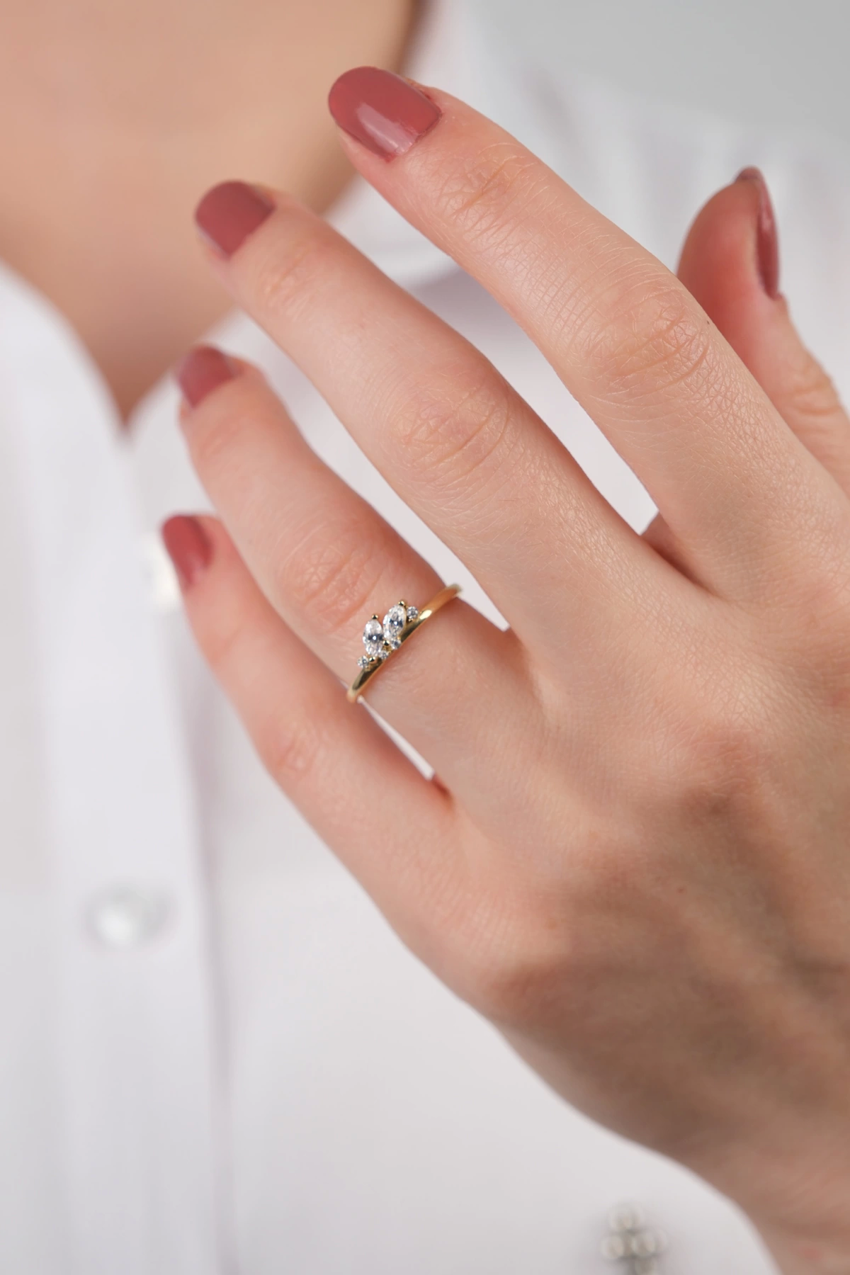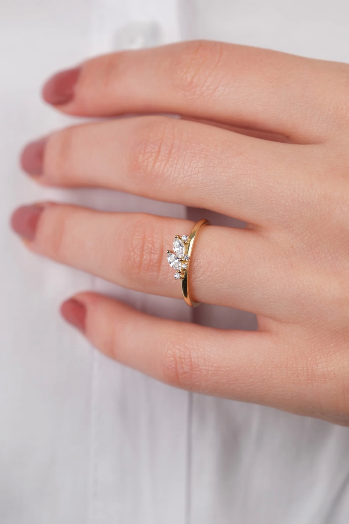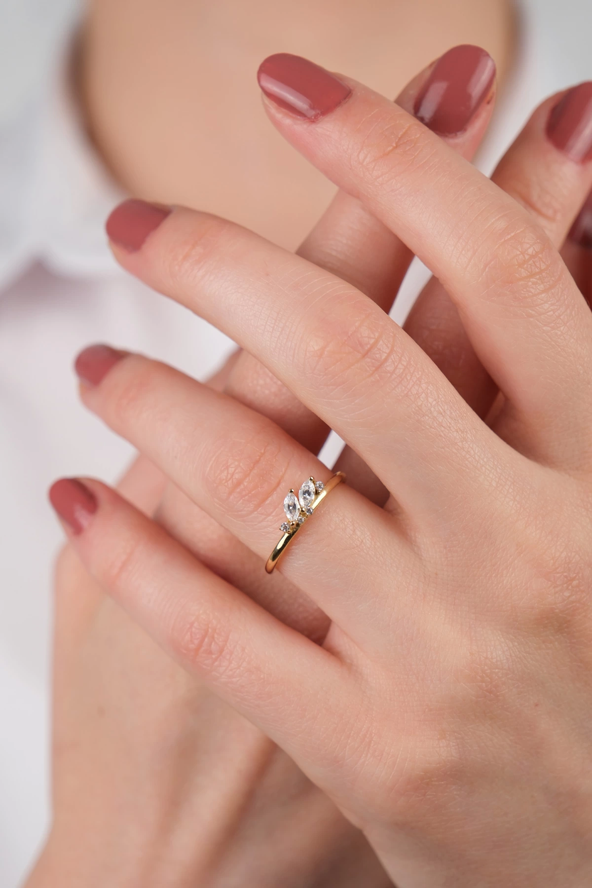 14 Ayar Altın Yaprak Kesimli Taşlı Yüzük 522