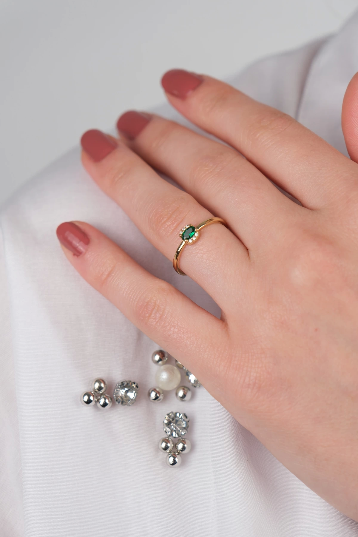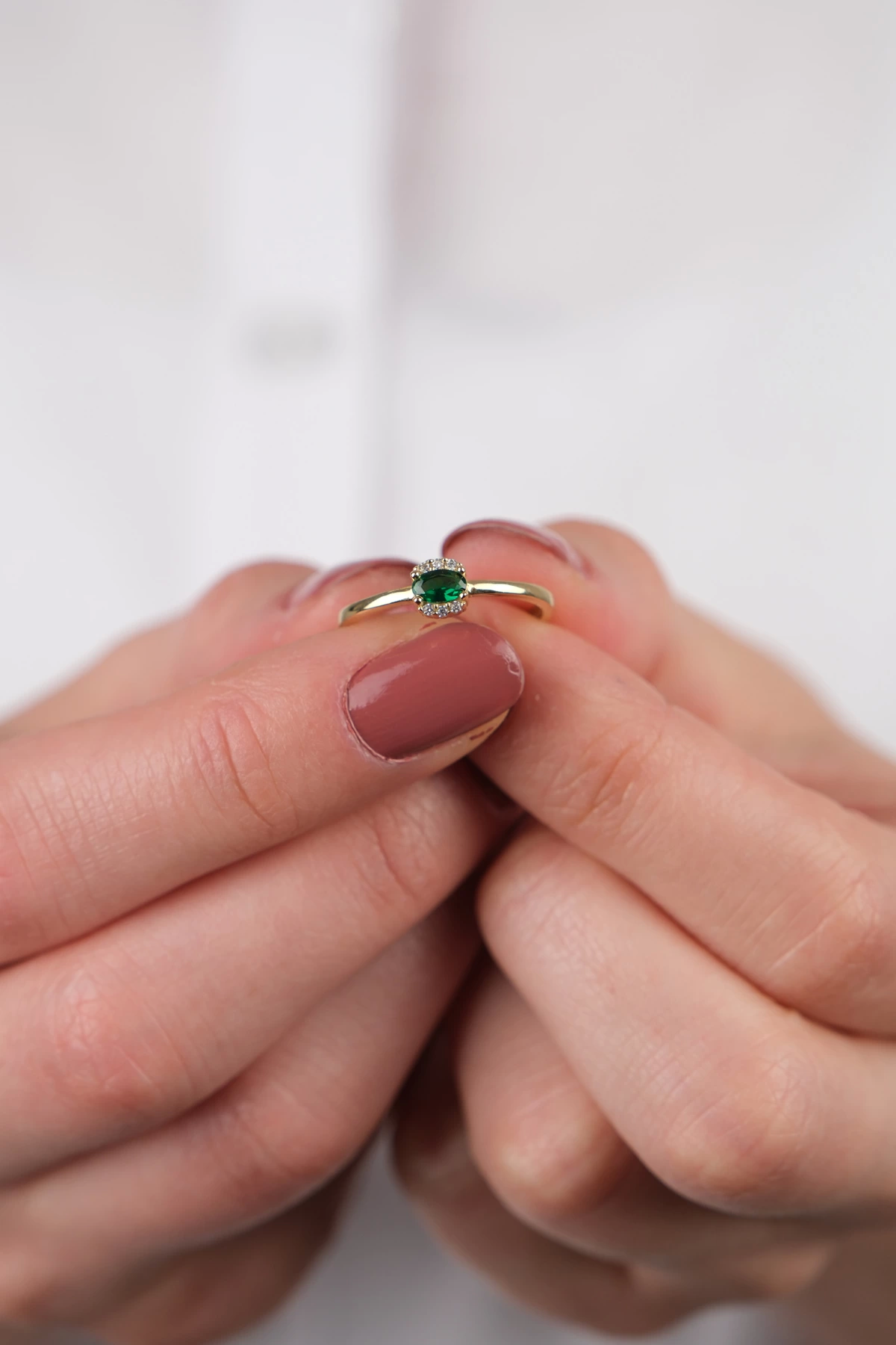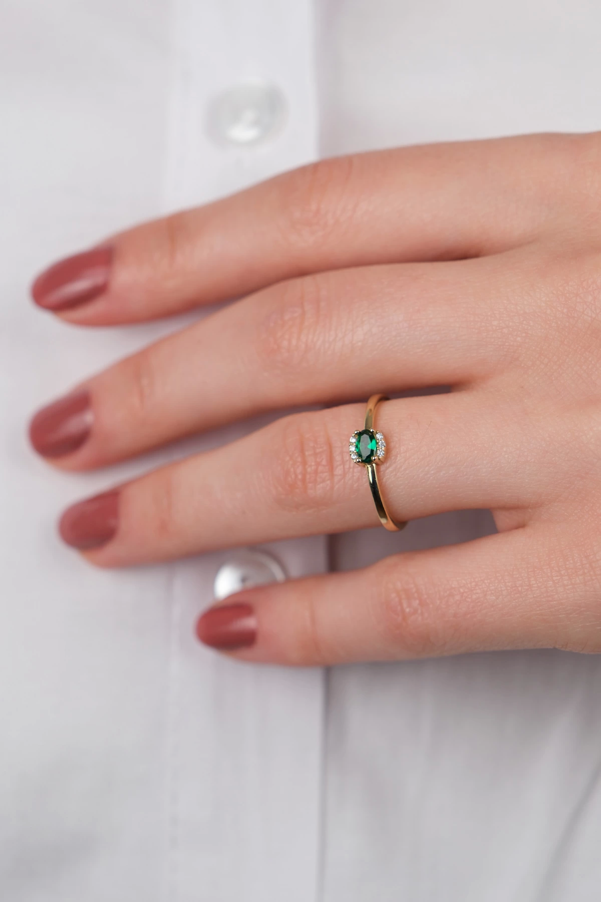 14 Ayar Altın Yeşil Beyaz Taşlı Yüzük 749