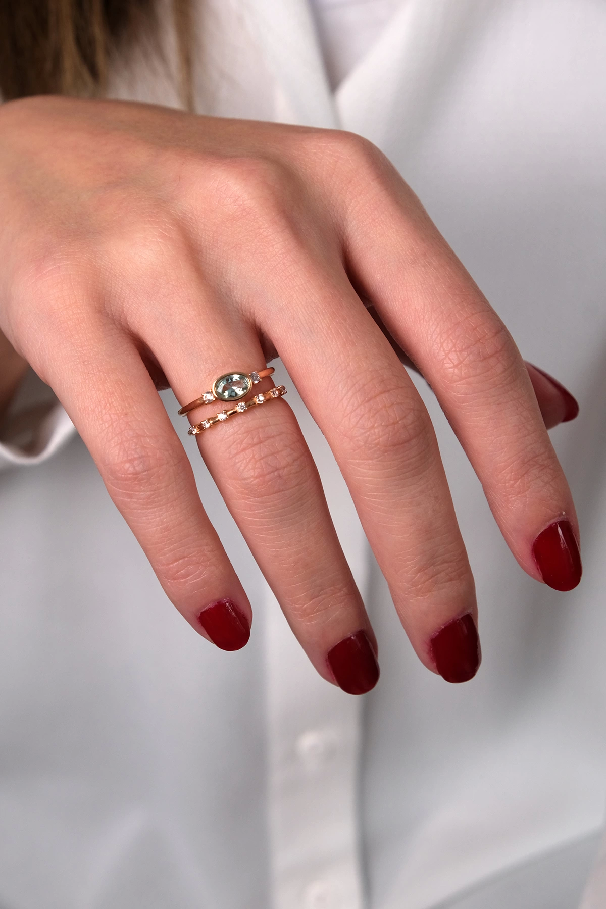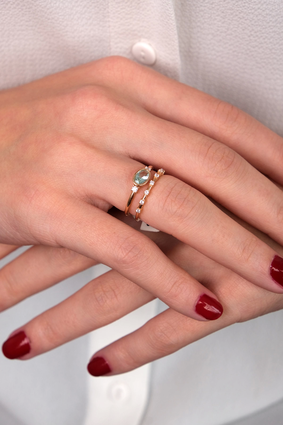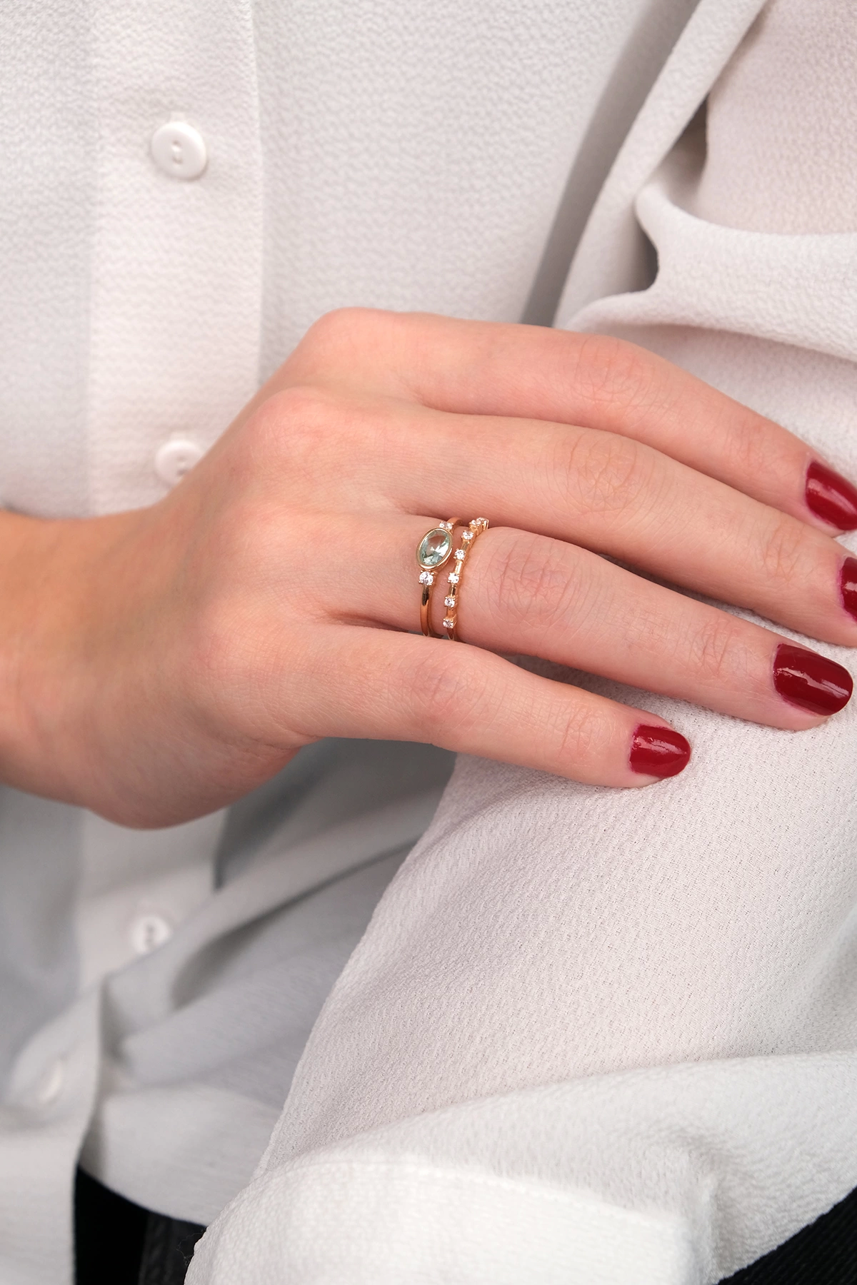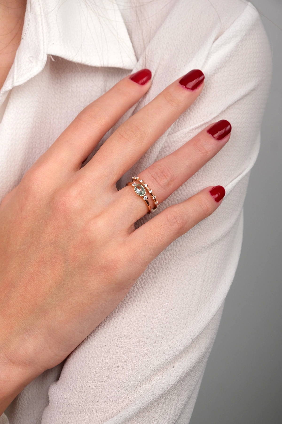 14 Ayar Altın Yeşil Taşlı İkili Yüzük 130