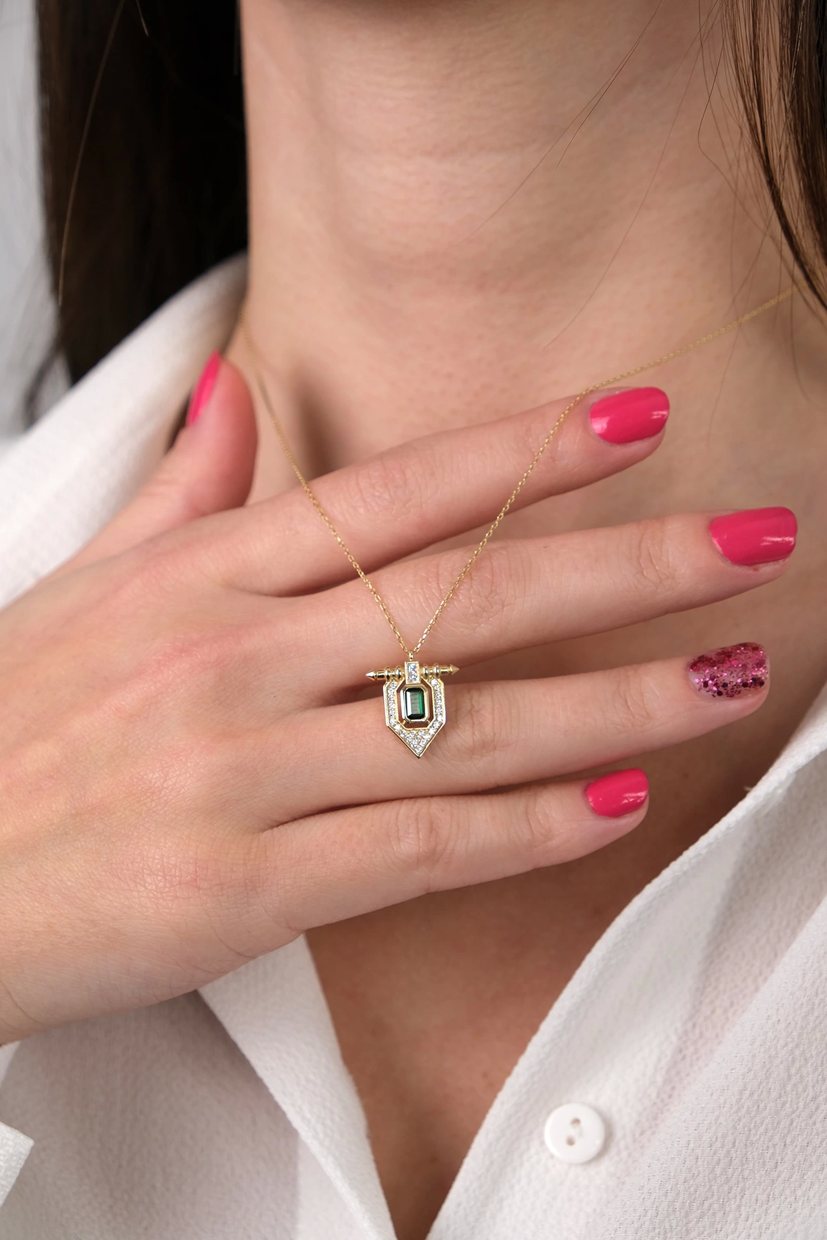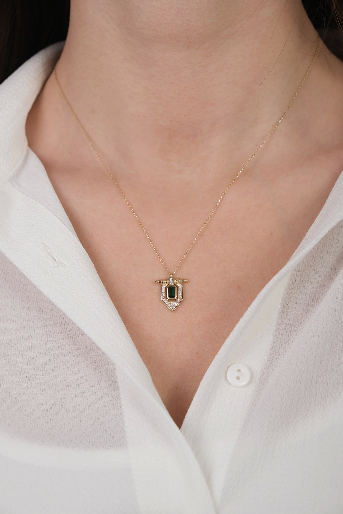 14 Ayar Altın Yeşil Taşlı Kolye 301