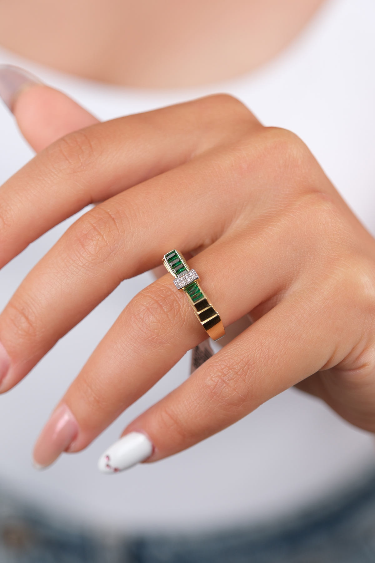 14 Ayar Altın Yeşil Taşlı Yüzük 927