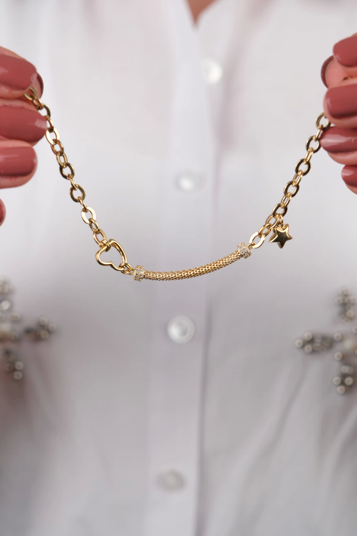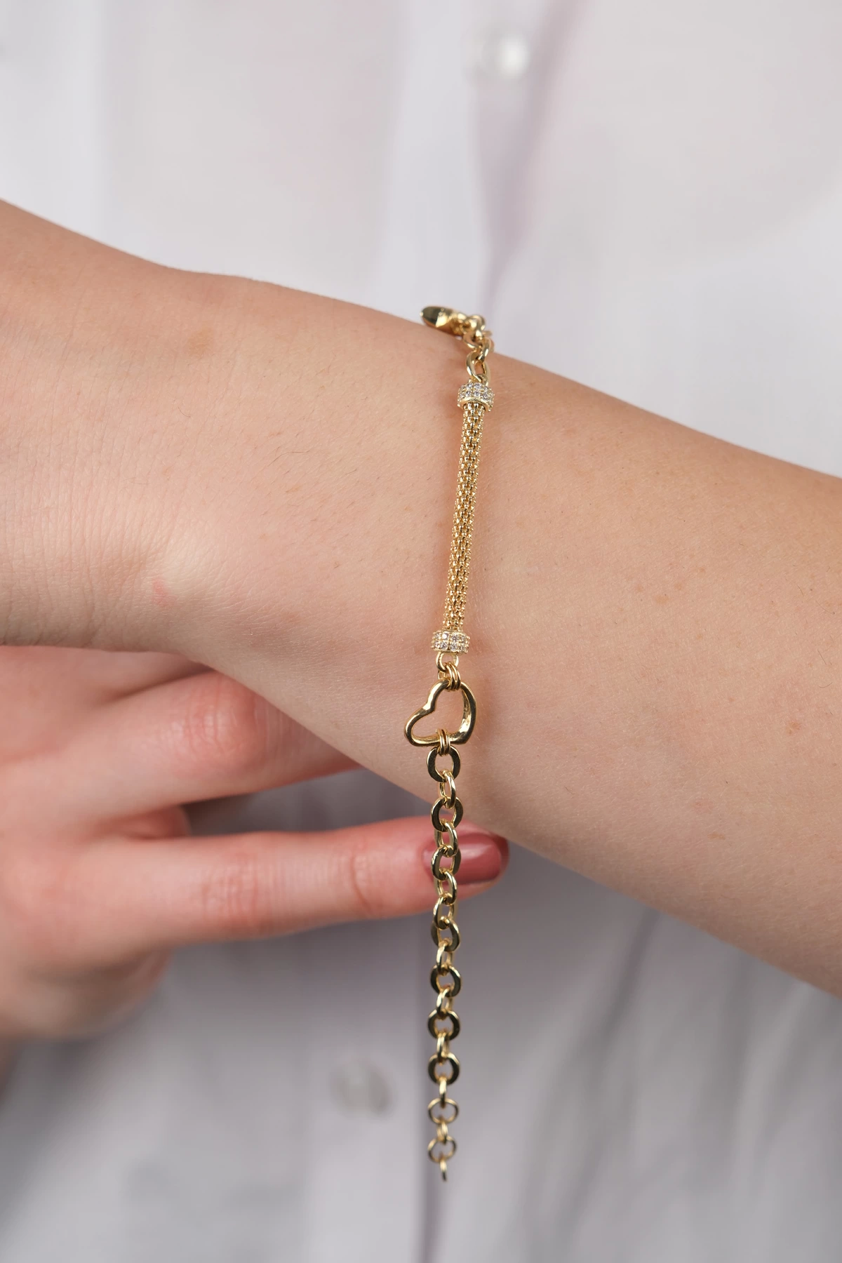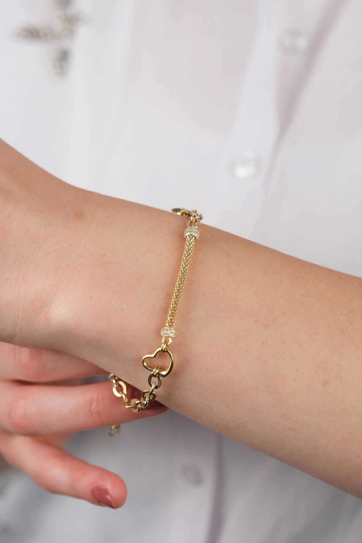 14 Ayar Altın Yıldız ve Kalp Figürlü Bileklik 442