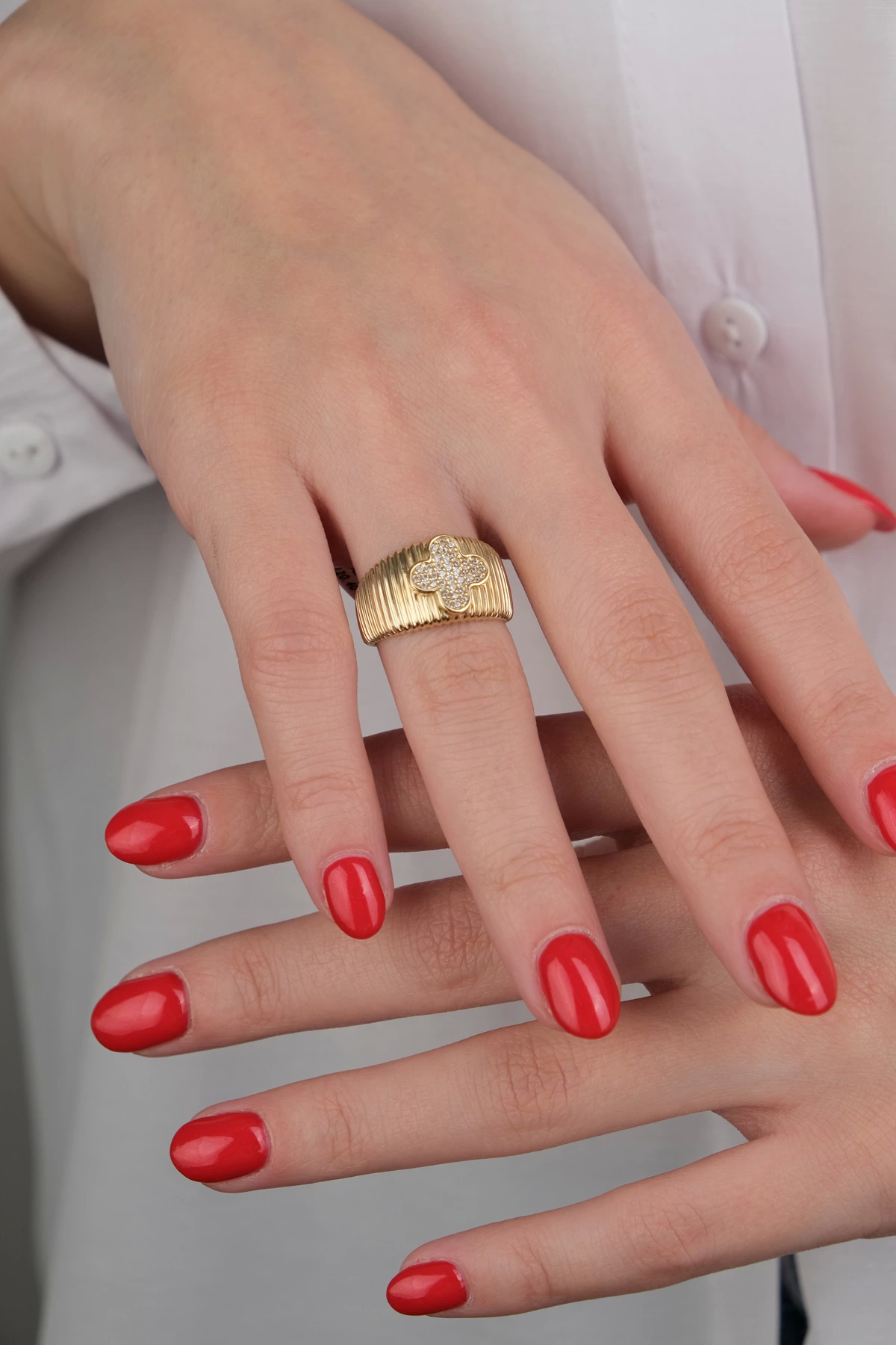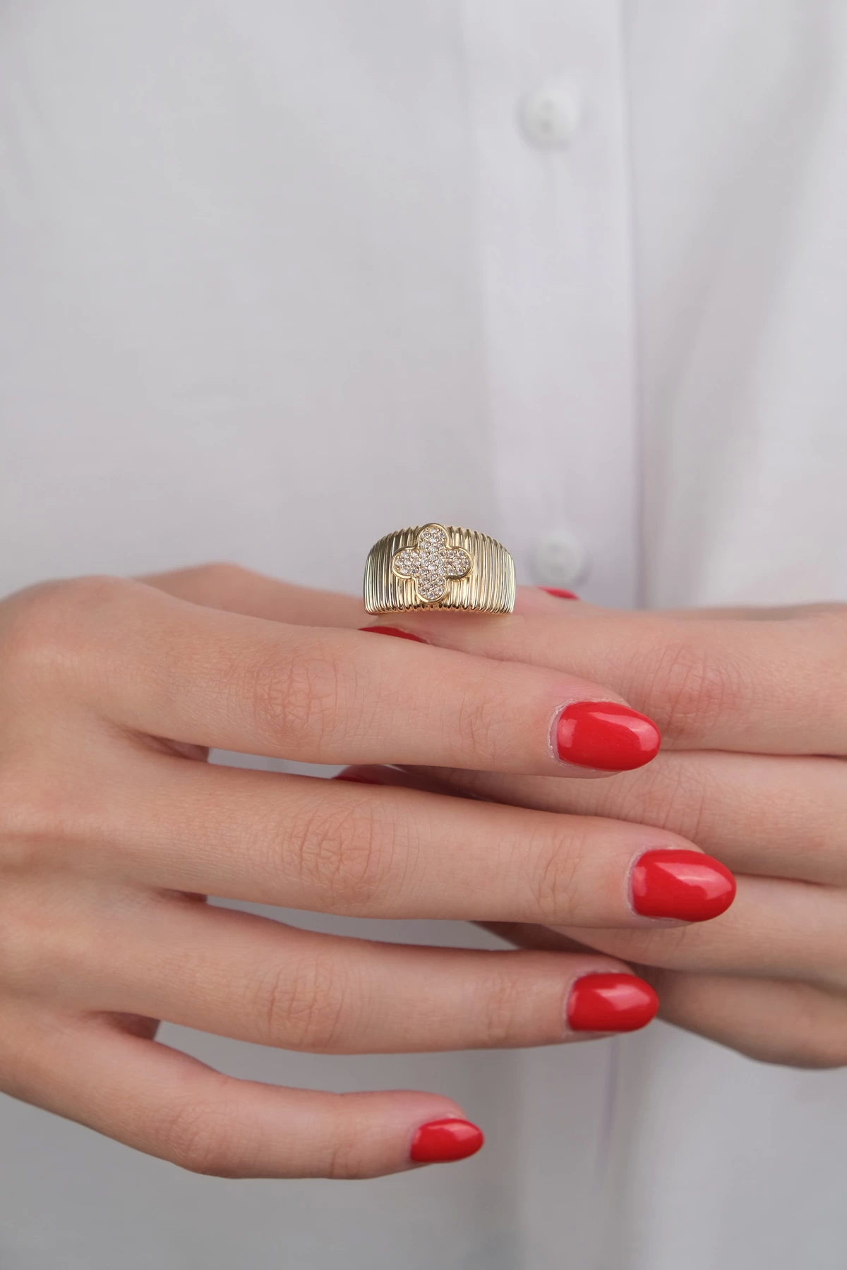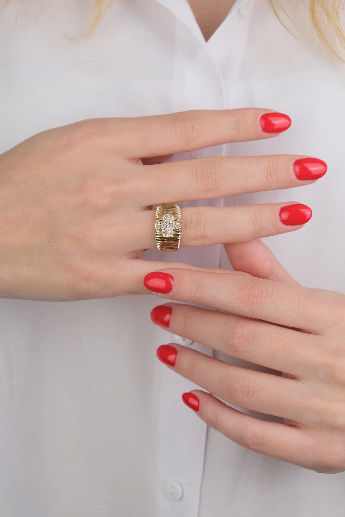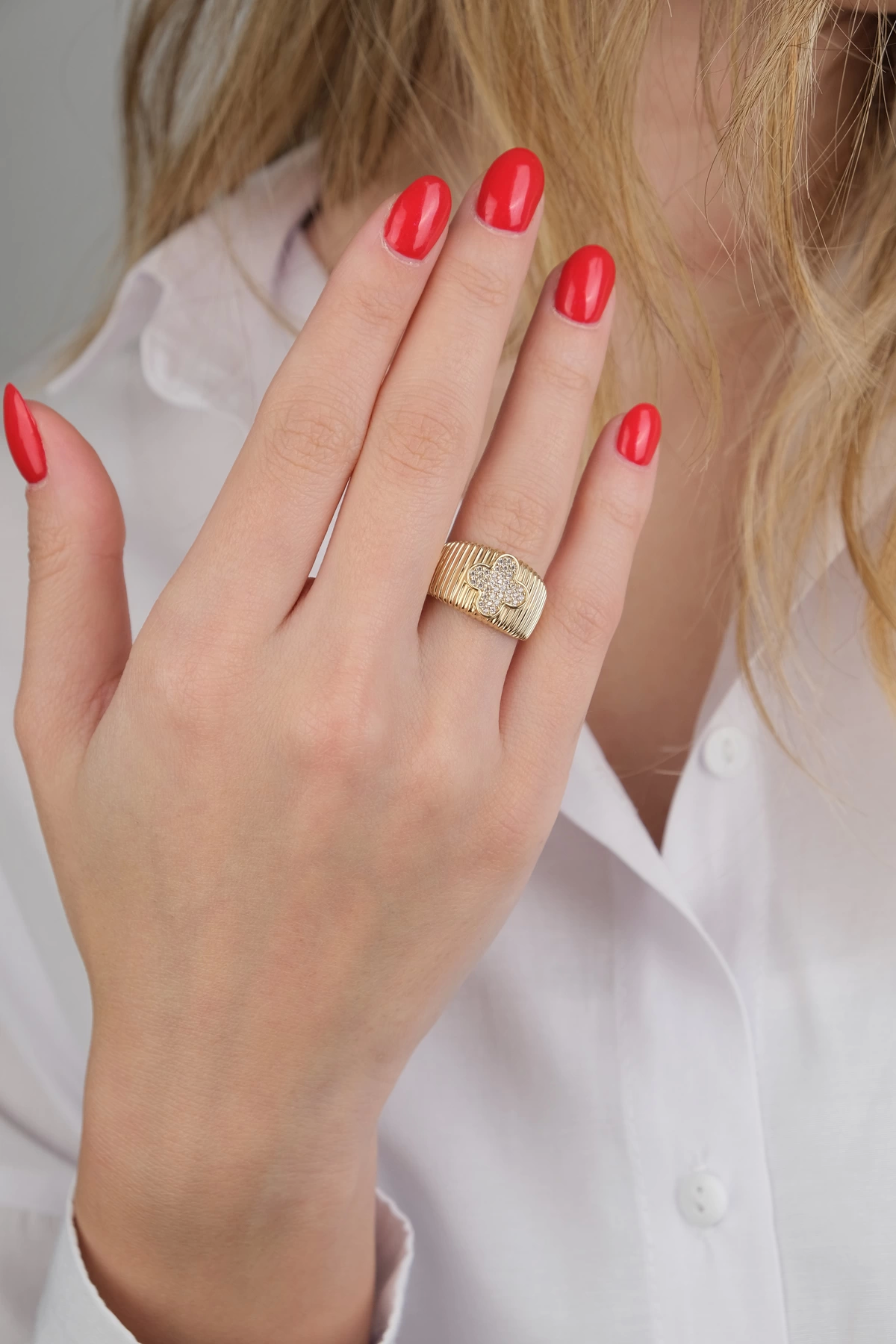 14 Ayar Altın Yonca Yüzük 628