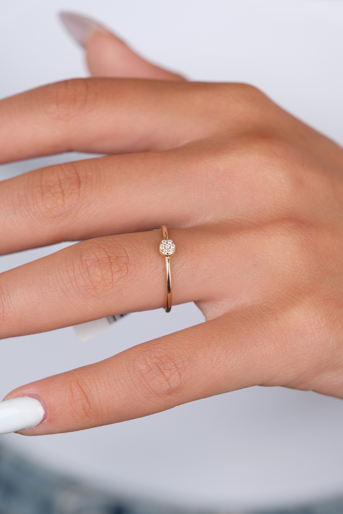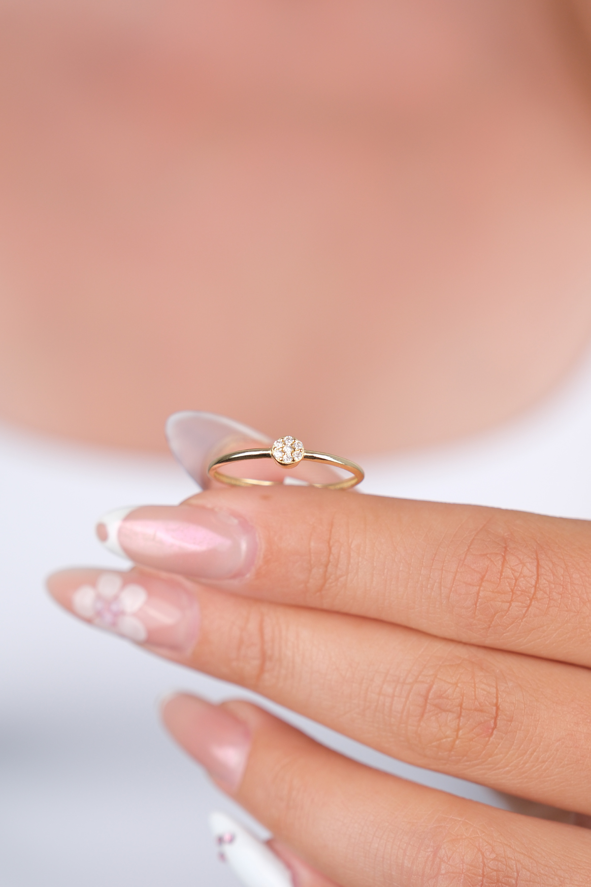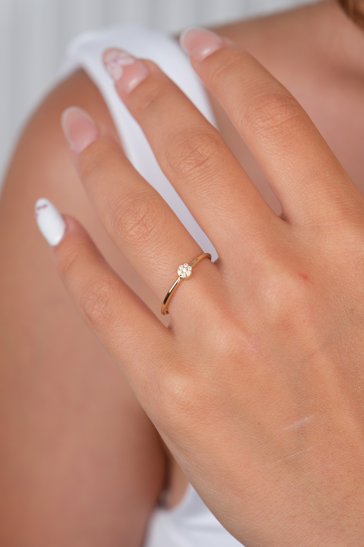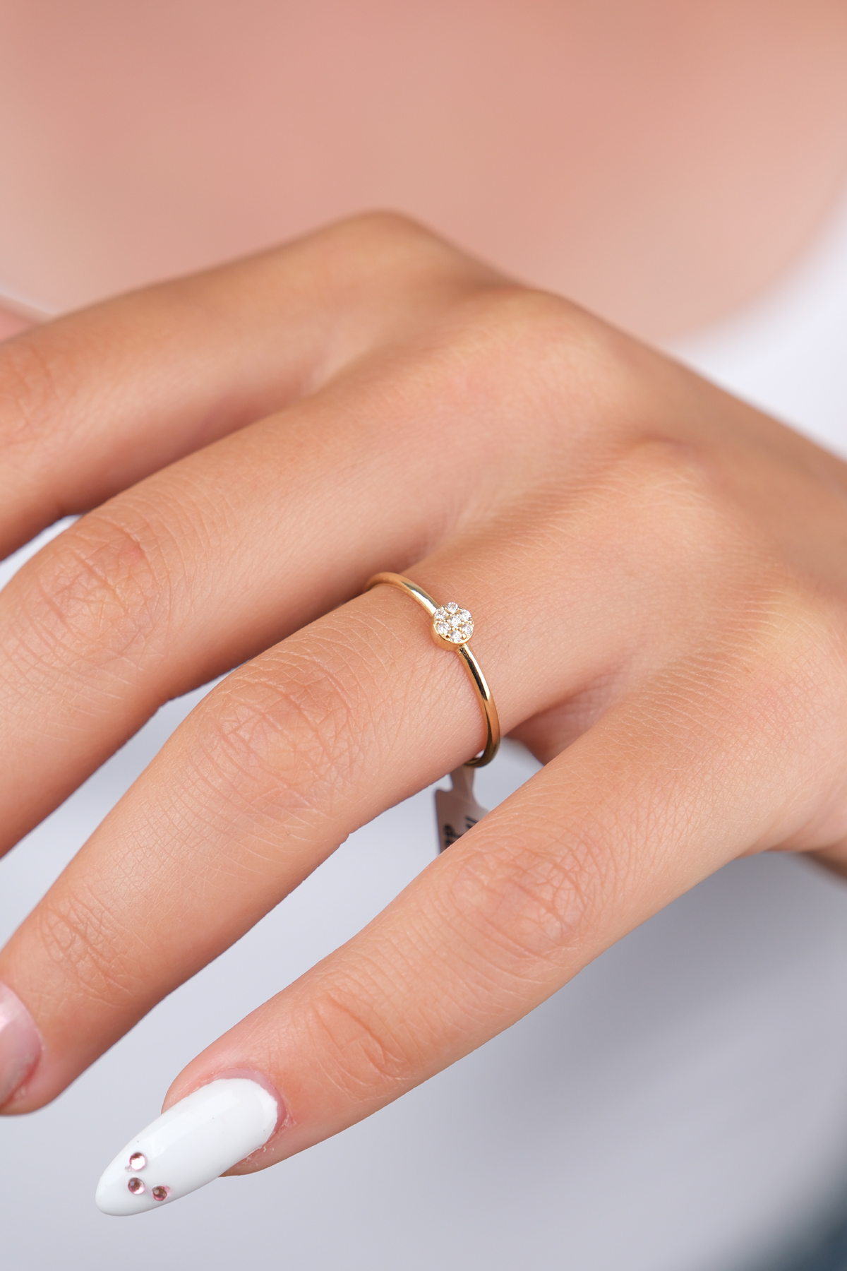 14 Ayar Altın Yuvarlak Küçük Taşlı Yüzük 939