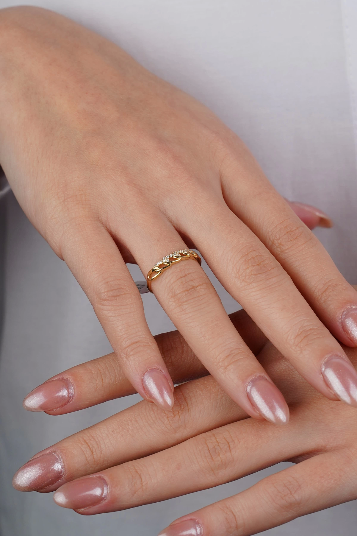 14 Ayar Altın Minimal Baget Taşlı Yüzük 618