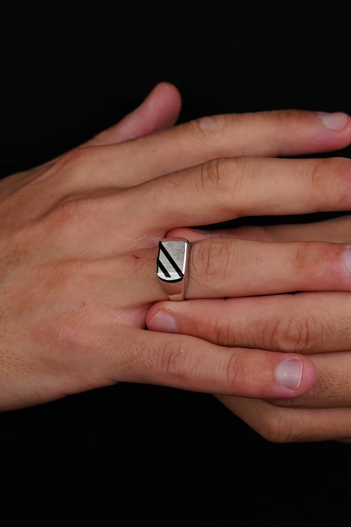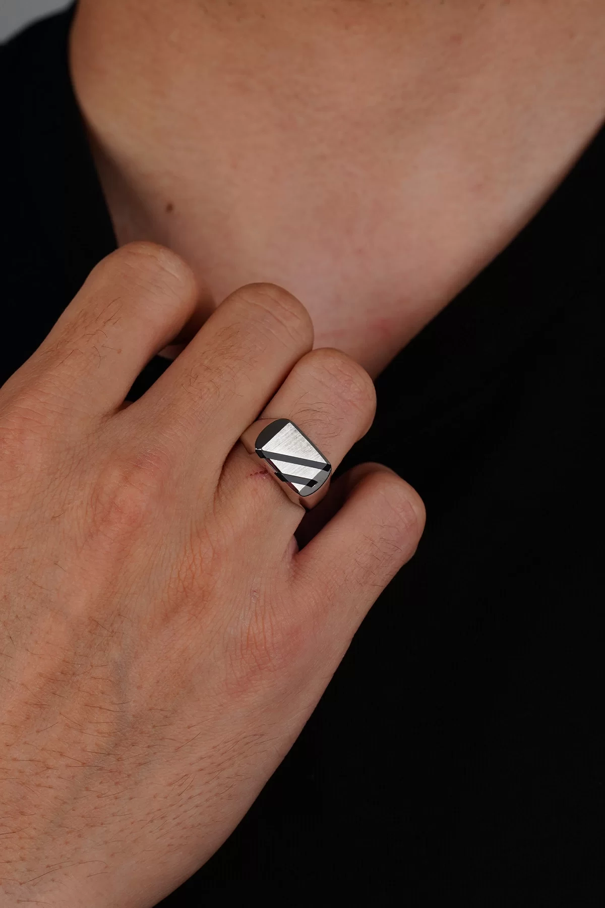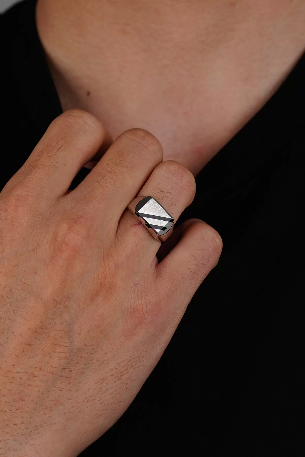 14 Ayar Altın Siyah Taşlı Erkek Yüzüğü 692