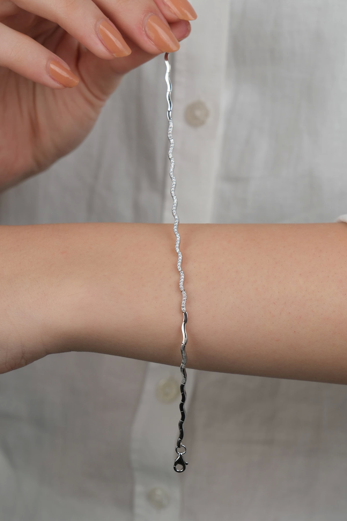 14 Ayar Altın Taşlı Kalpli İnce Gurmet Zincir Bileklik 808