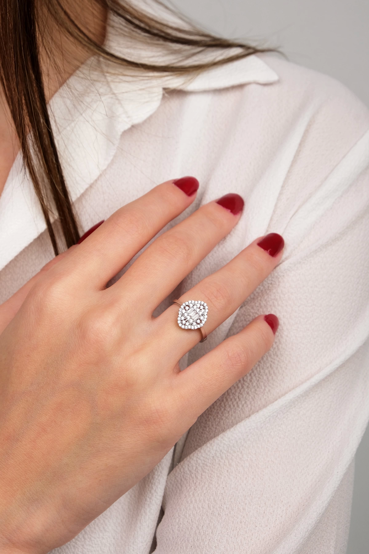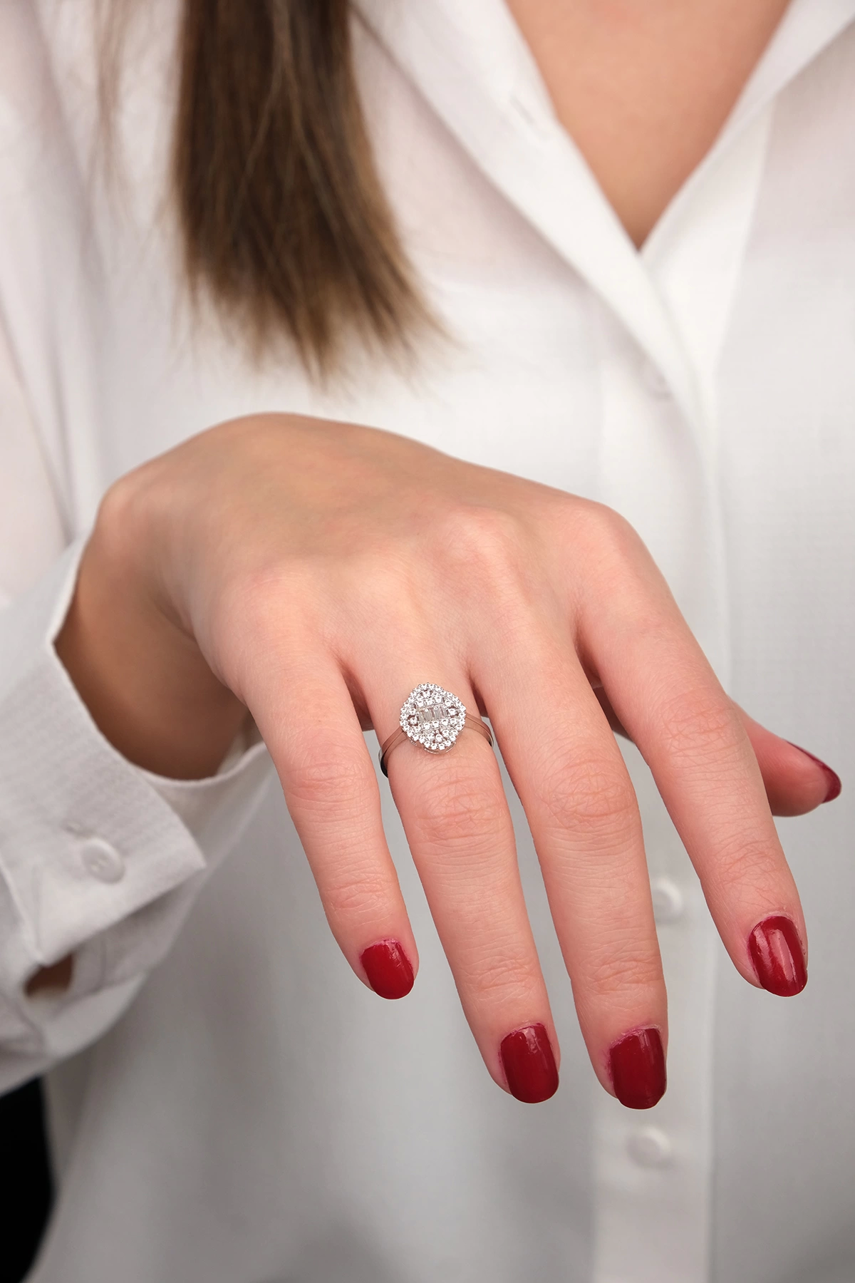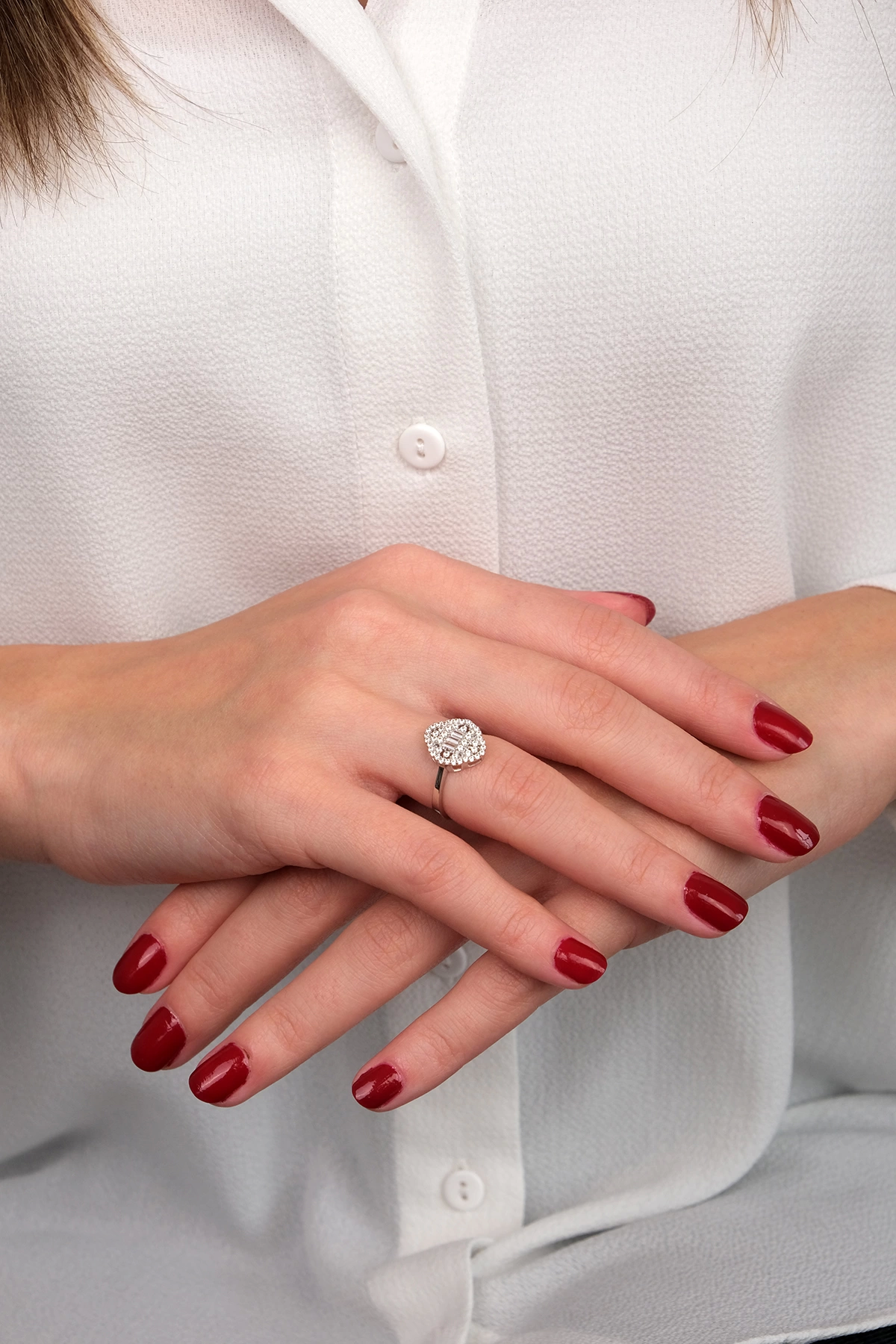 14 Ayar Beyaz Altın Dörtgen Baget Yüzük 342