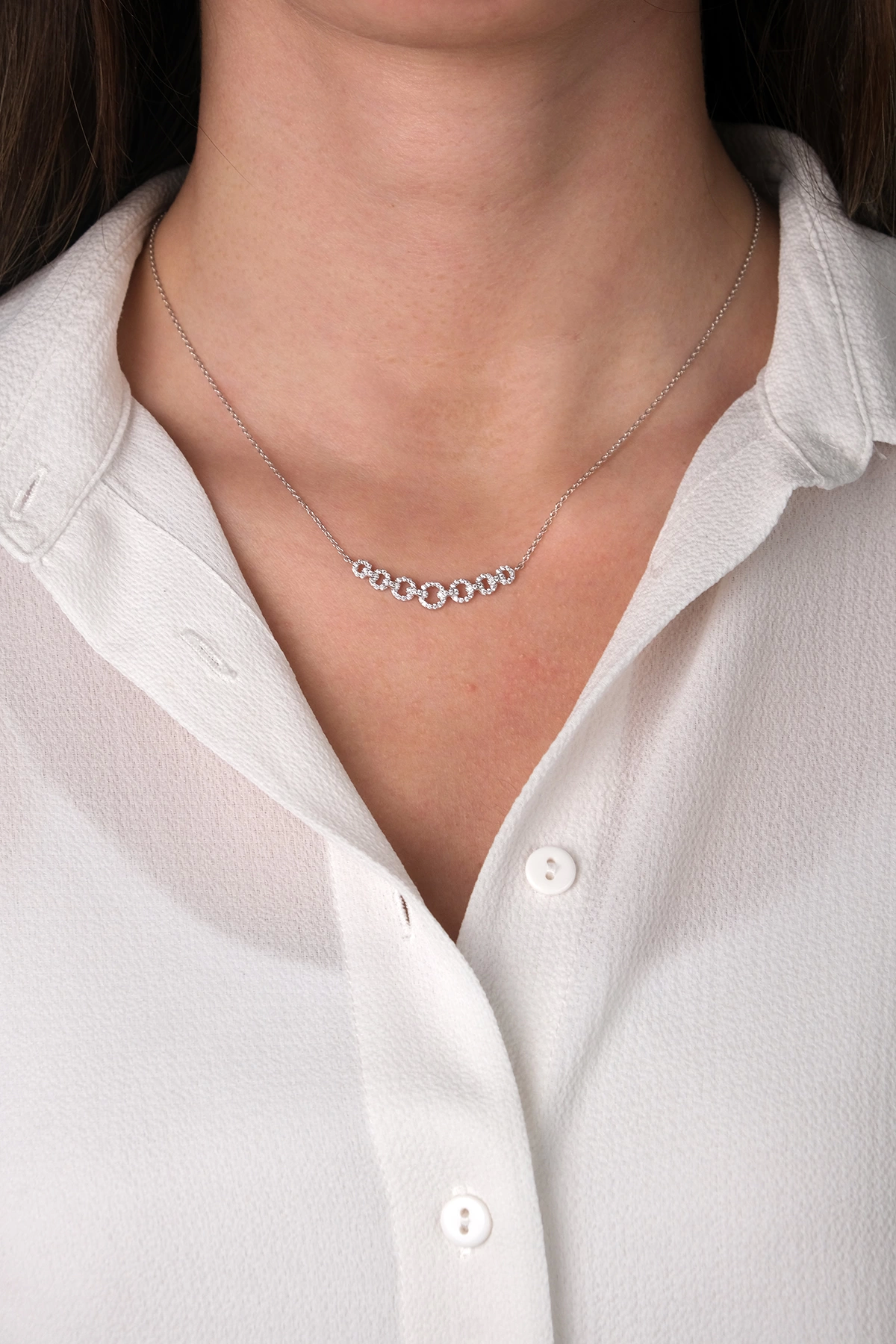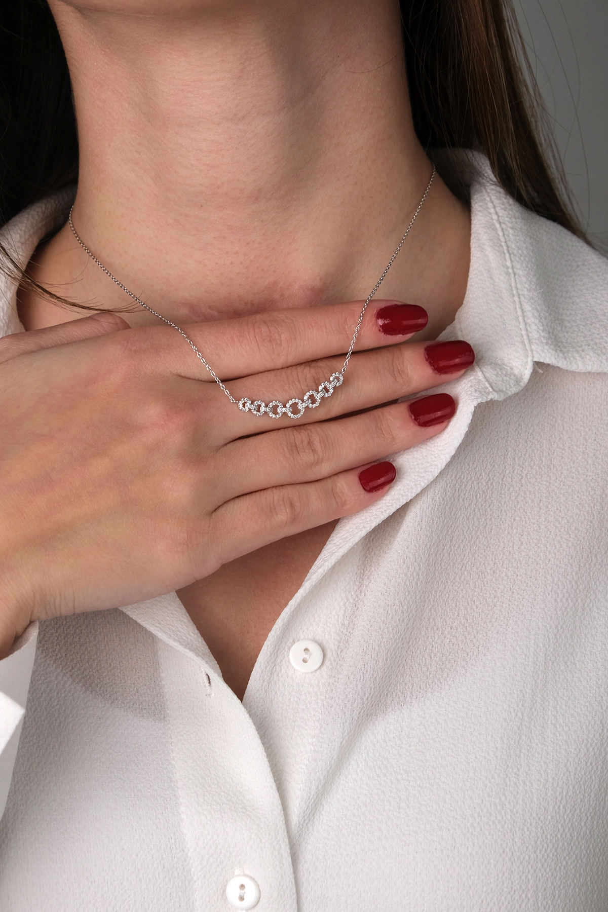 14 Ayar Beyaz Altın Taşlı Halka Sıralı Kolye 321