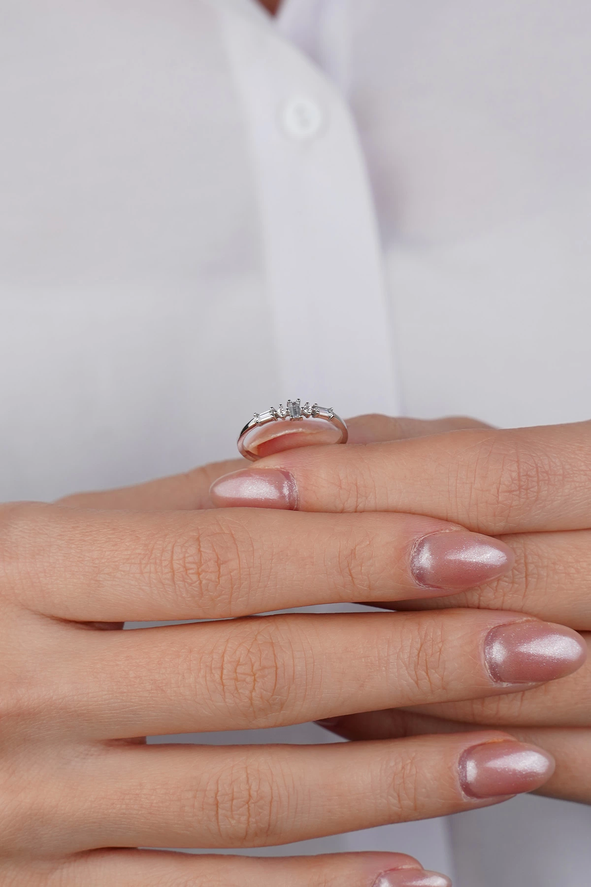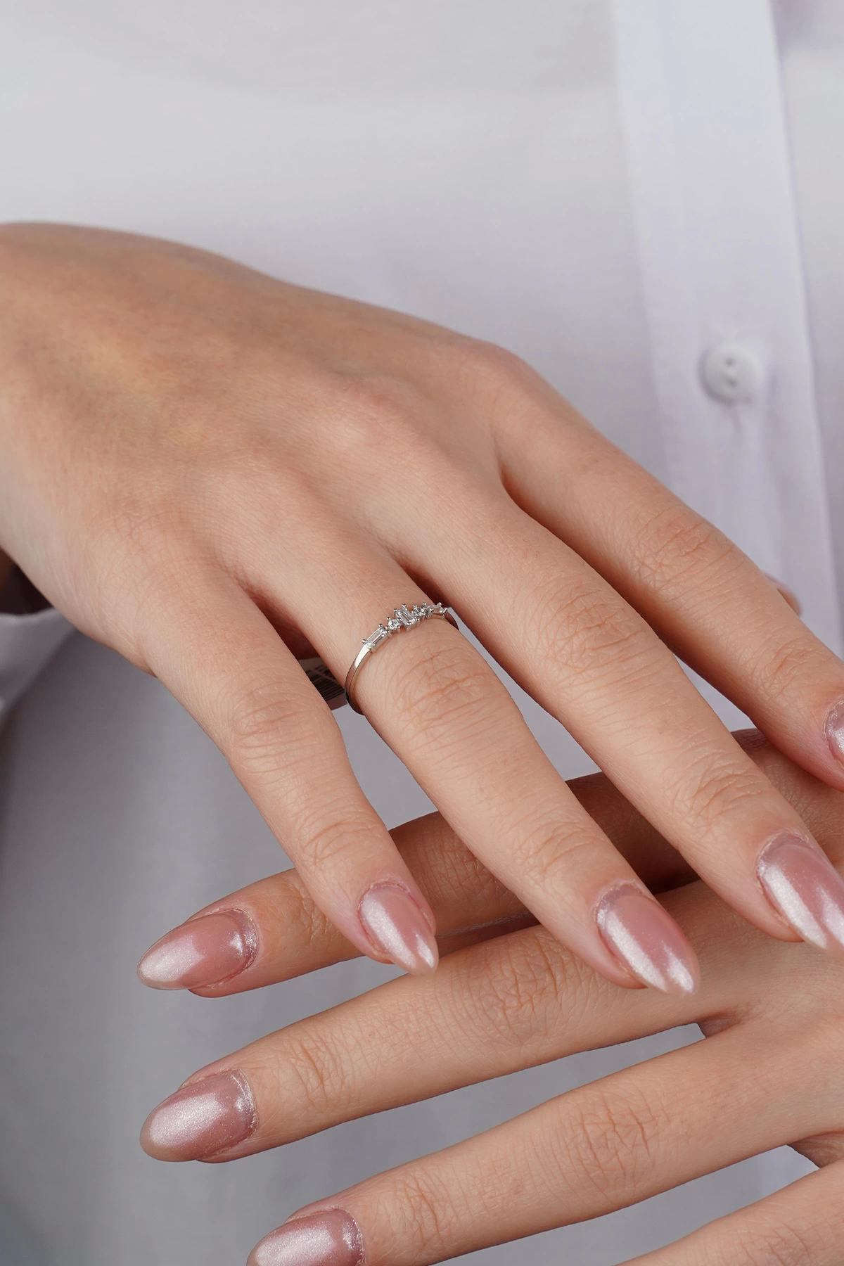 14 Ayar Beyaz Altın Taşlı Yüzük 611