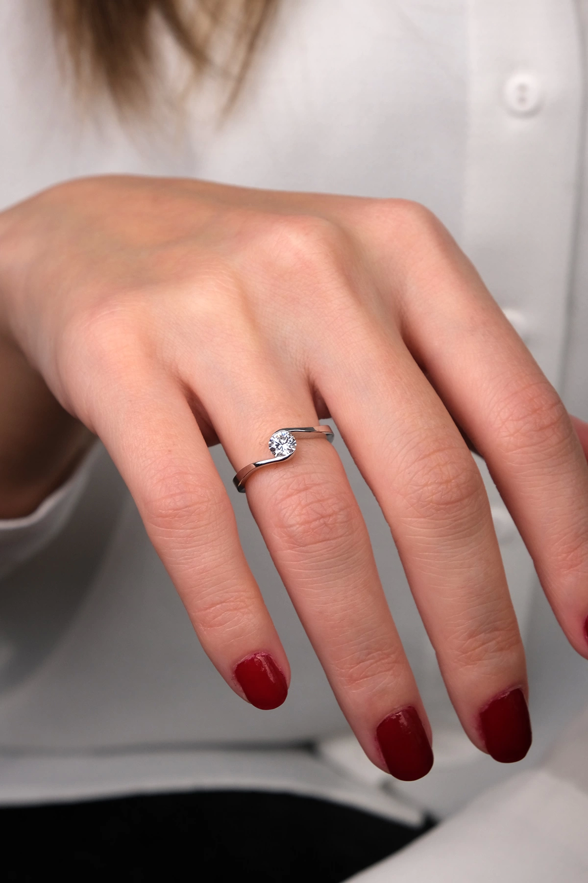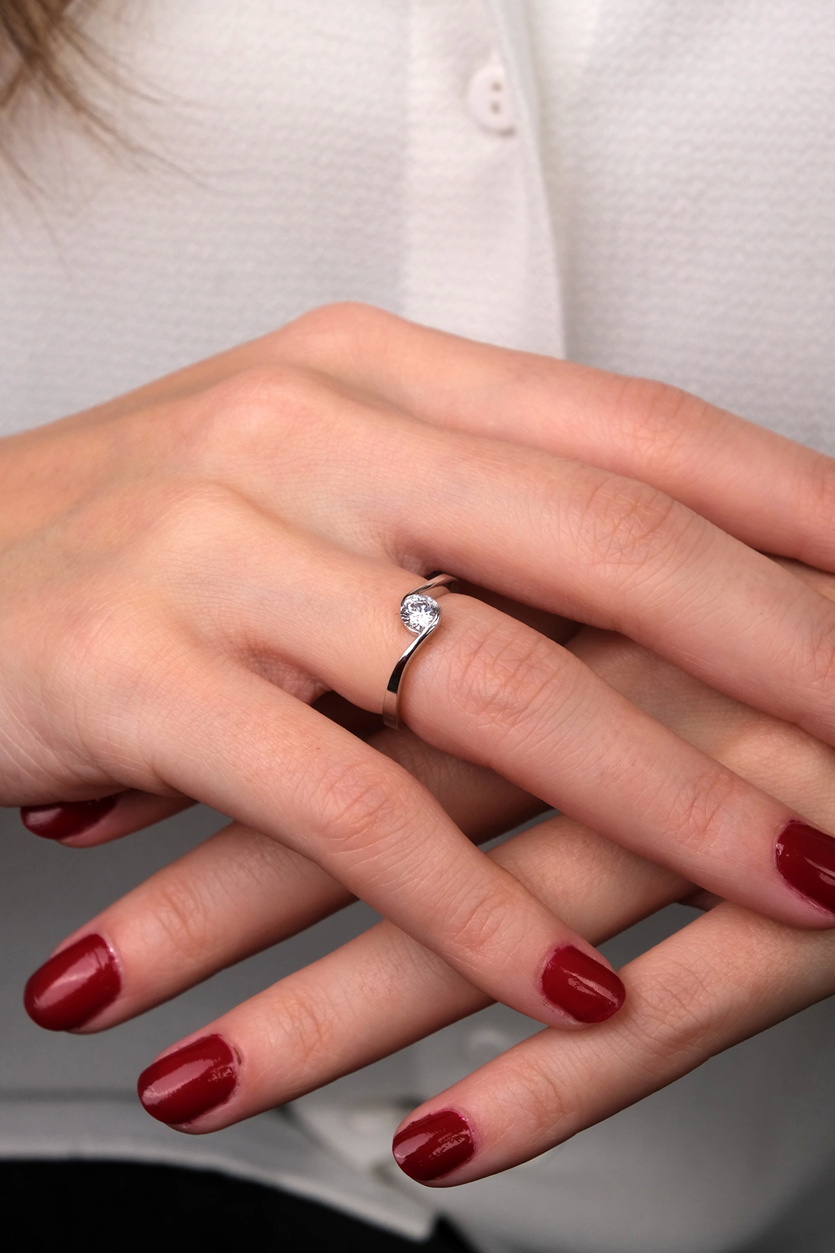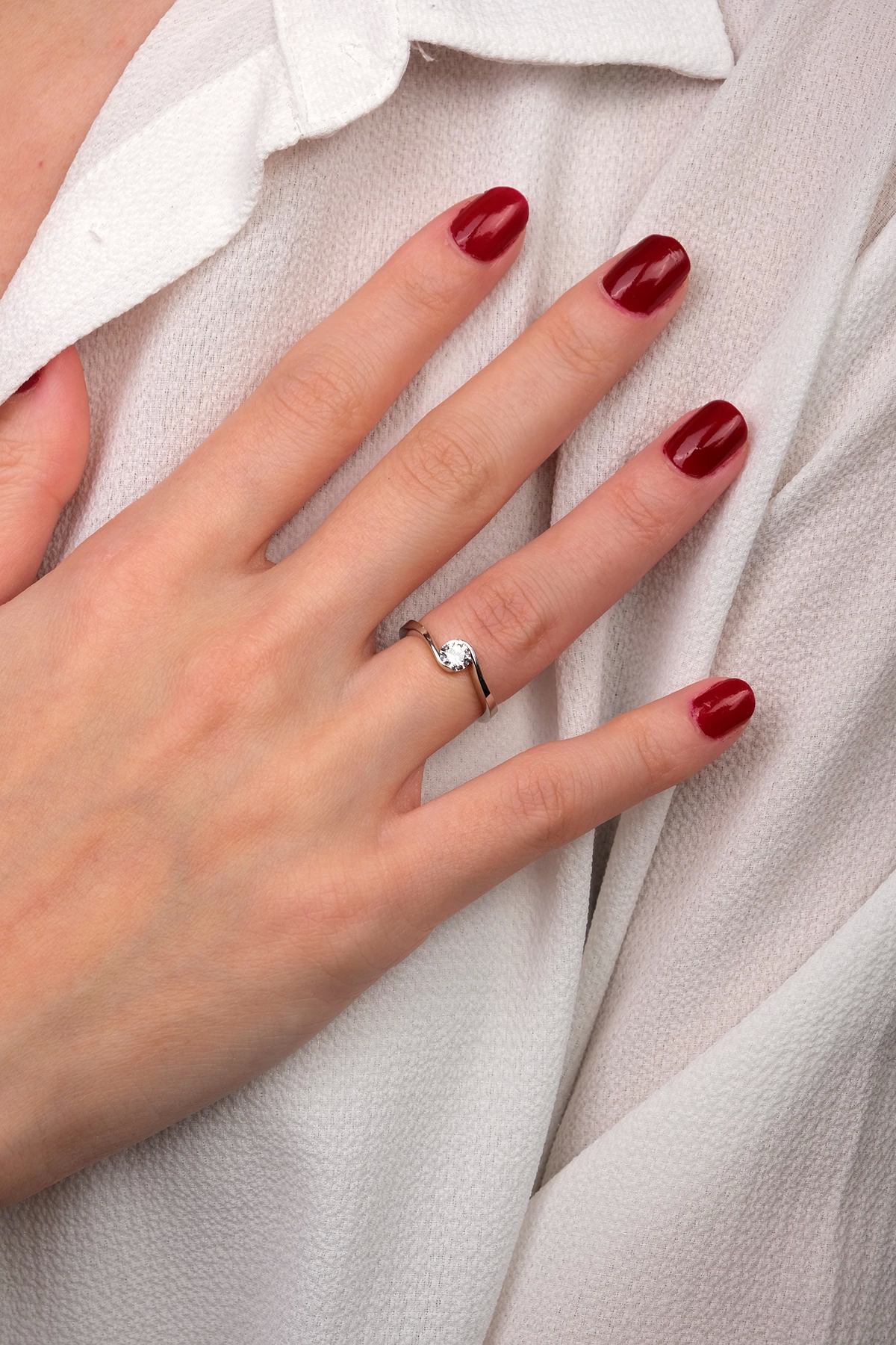 14 Ayar Beyaz Altın Tektaş Yüzük 154