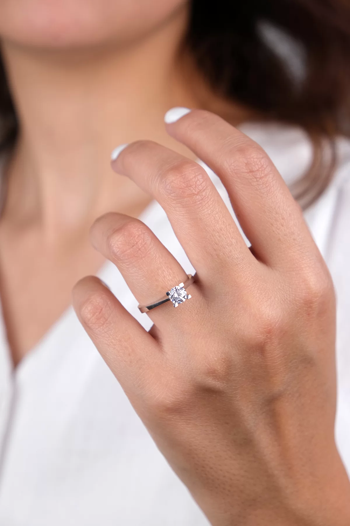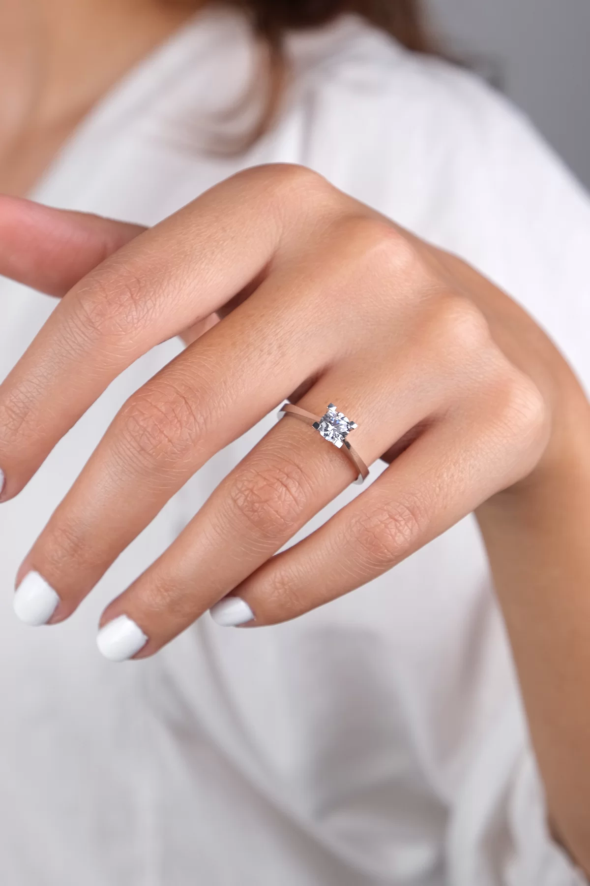 14 Ayar Beyaz Altın Tektaş Yüzük 171